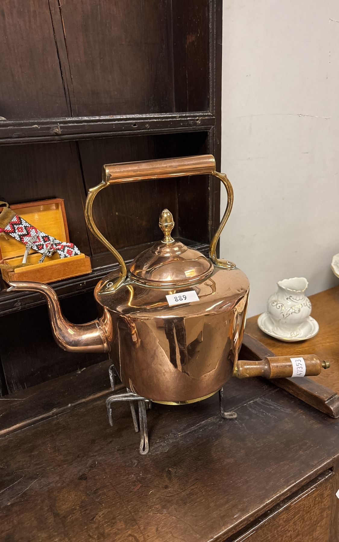LARGE COPPER TEAPOT WITH HANDLED STAND