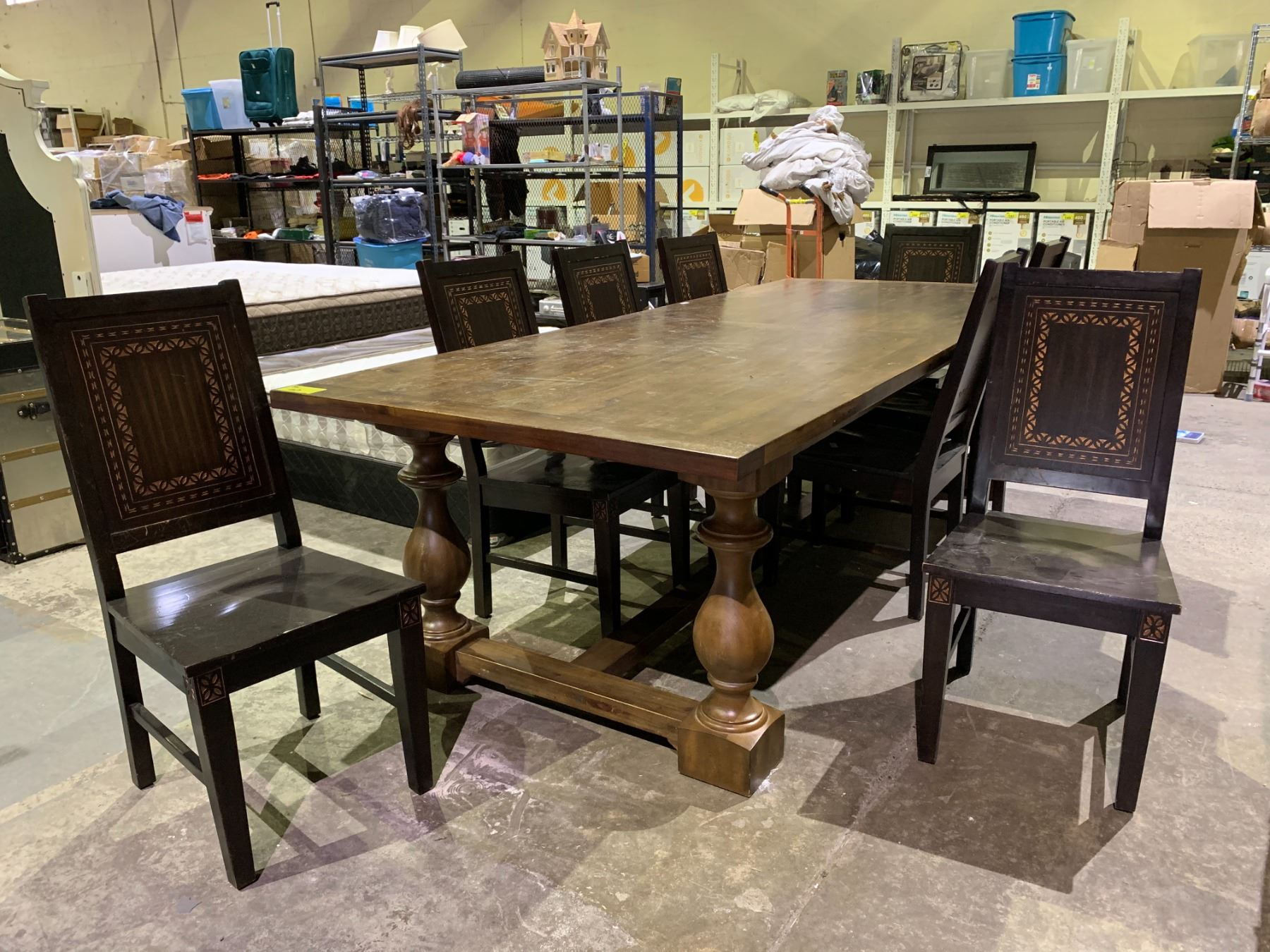 LARGE DINING ROOM TABLE (9' X 43" X 30") WITH 8 CHAIRS