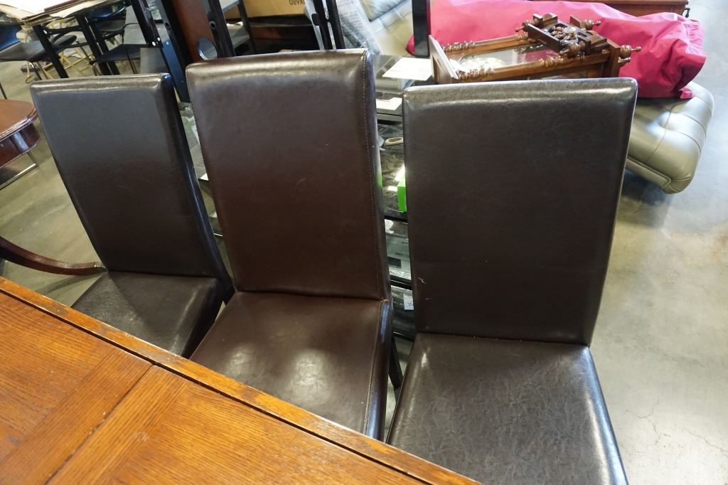 LARGE DINING TABLE WITH LEAF AND 5 LEATHER LOOK CHAIRS - 5 FOOT LONG X 42 INCHES WIDE X 30 TALL