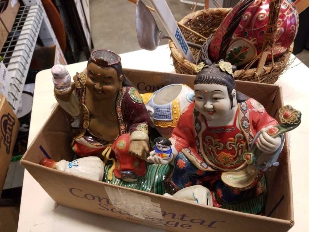 LARGE EASTERN FIGURE, ELEPHANT TEAPOT AND SALT AND PEPPER