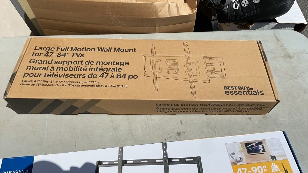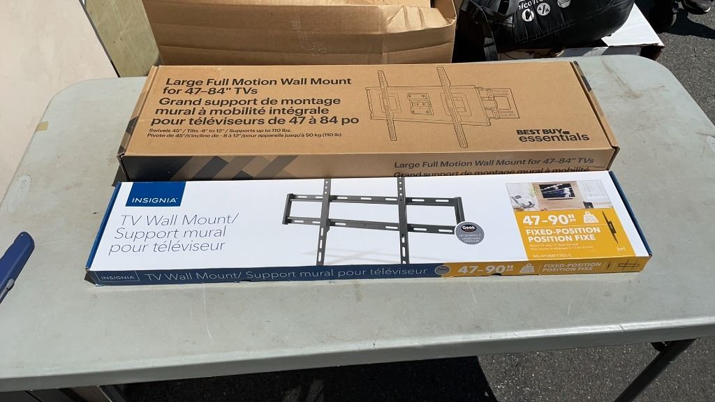 LARGE FULL MOTION 47" -84" TV MOUNT AND INSIGNIA 47"-90" FIXED WALL MOUNT - RETAIL $288