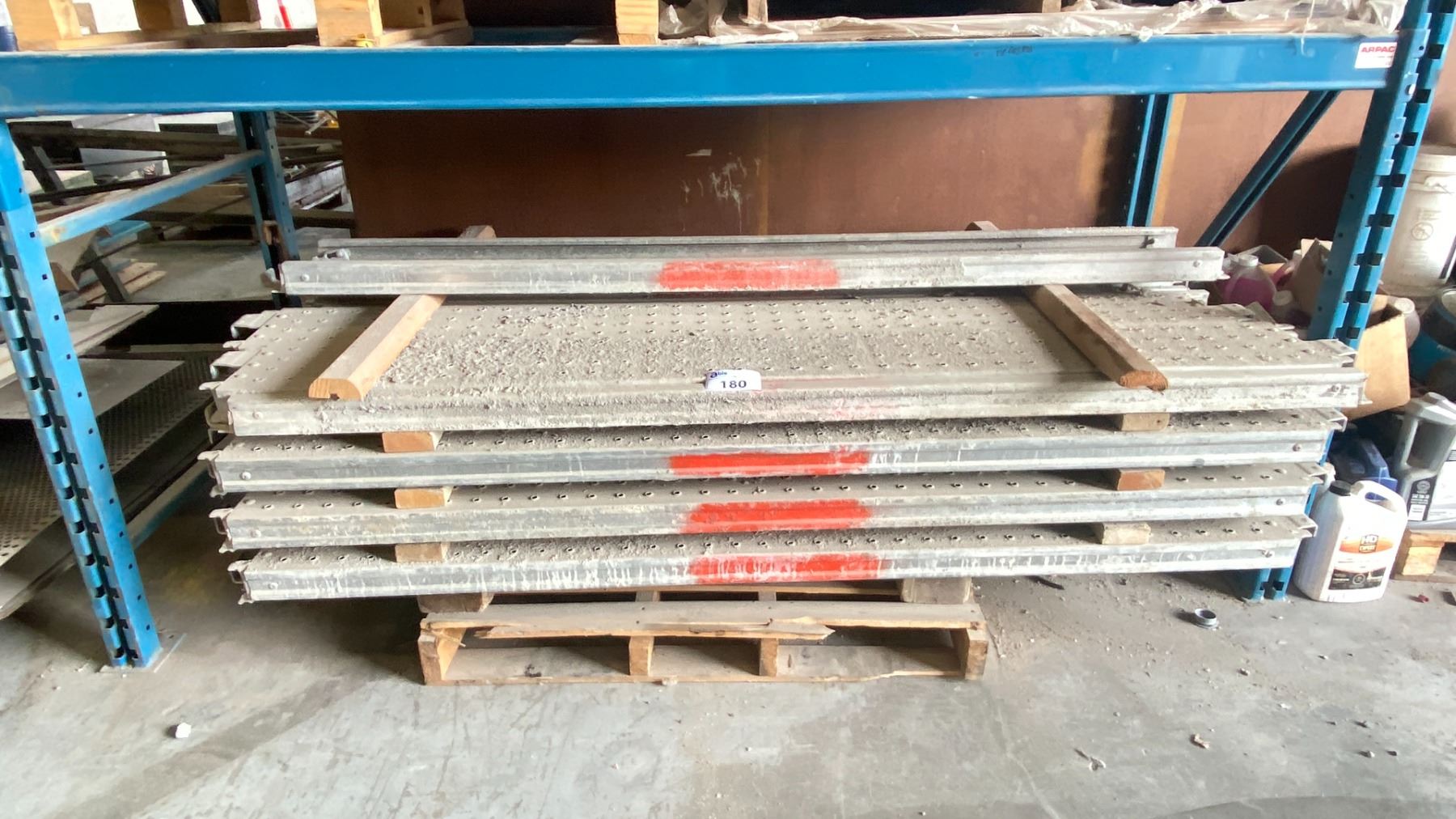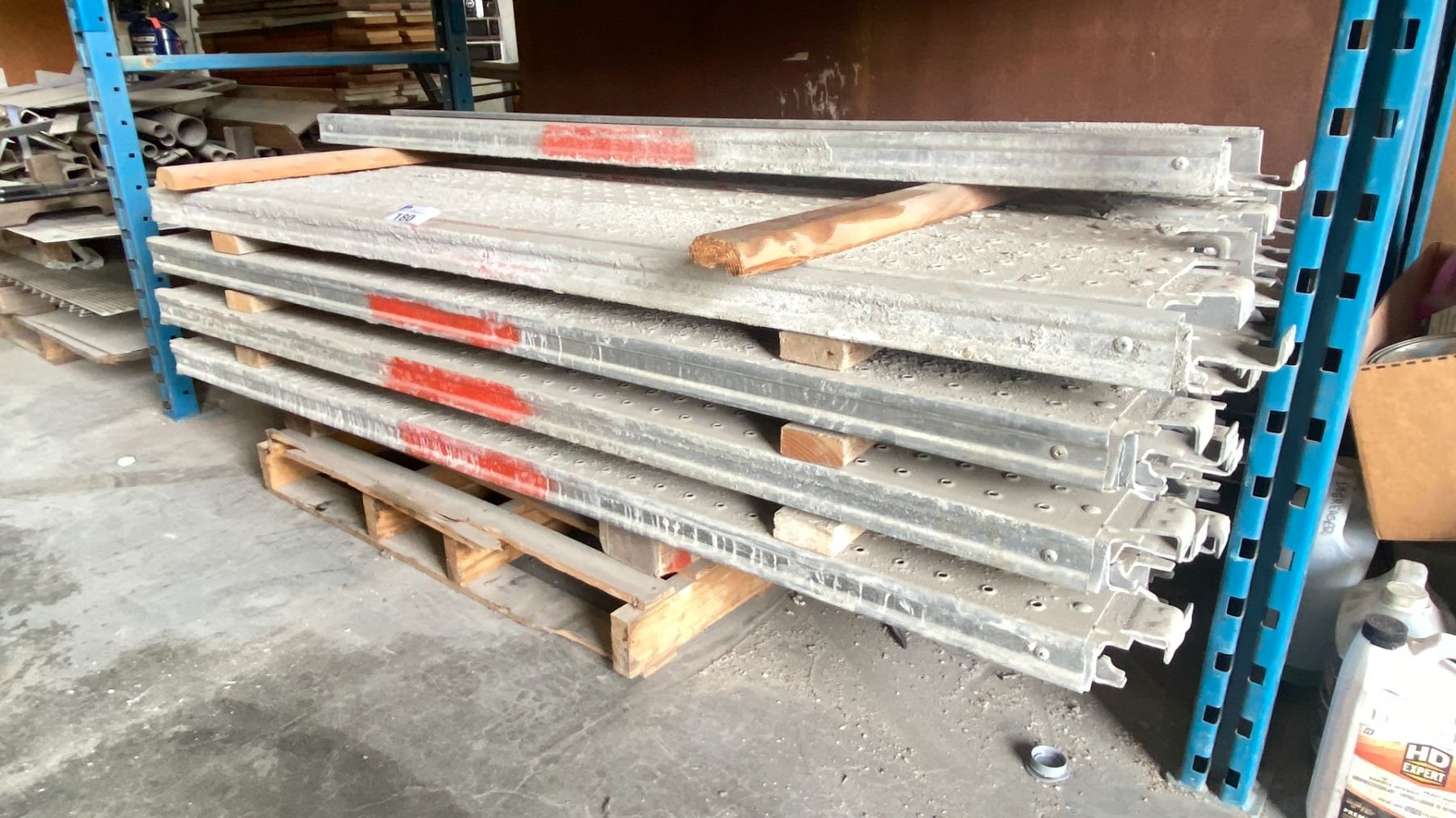 LARGE GROUP OF 81" X 9 1/2" PERFORATED ALUMINIUM COMMERCIAL SCAFFOLDING PLANKS - APPROX.33 PCS.