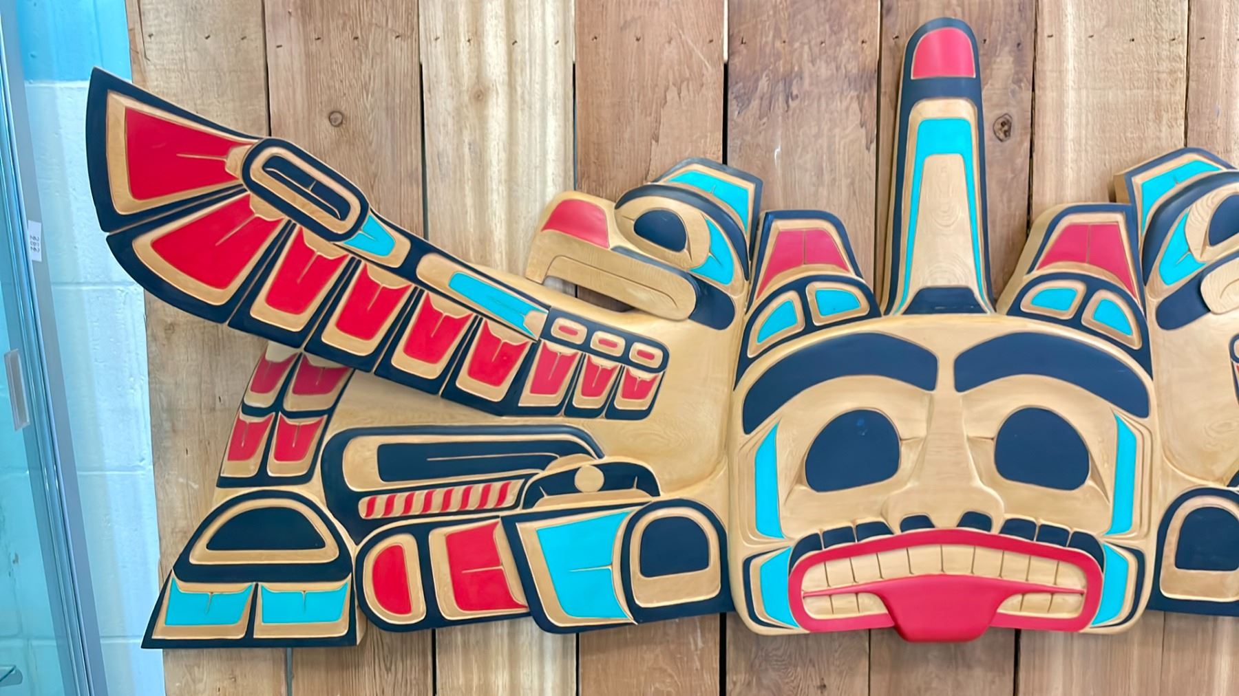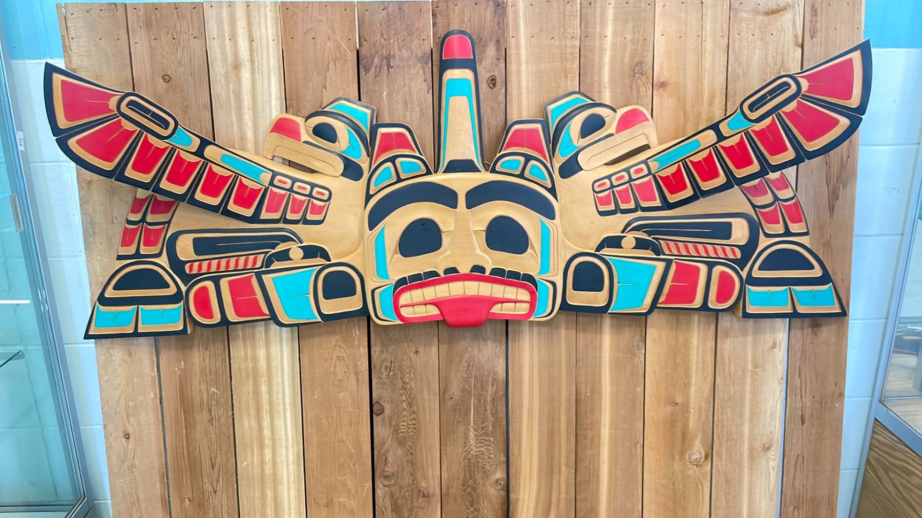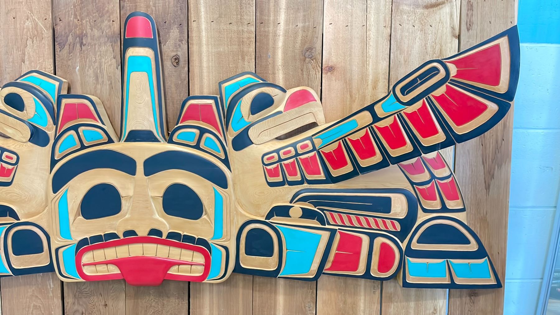 LARGE HAND CARVED FIRST NATIONS ORCA & THUNDERBIRD PLAQUE BY JOHN JOSEPH OF SQUAMISH INDIAN BAND *COAST SALISH* APPROX 59X23"