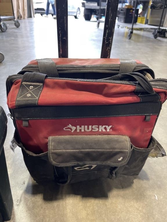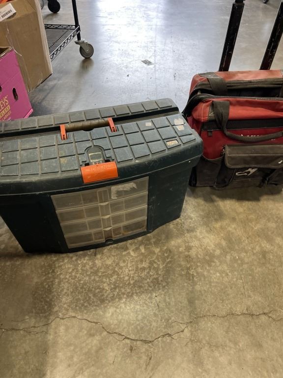 LARGE HARDCASE TOOL BOX AND ROLLING HUSKY ROOL BAG