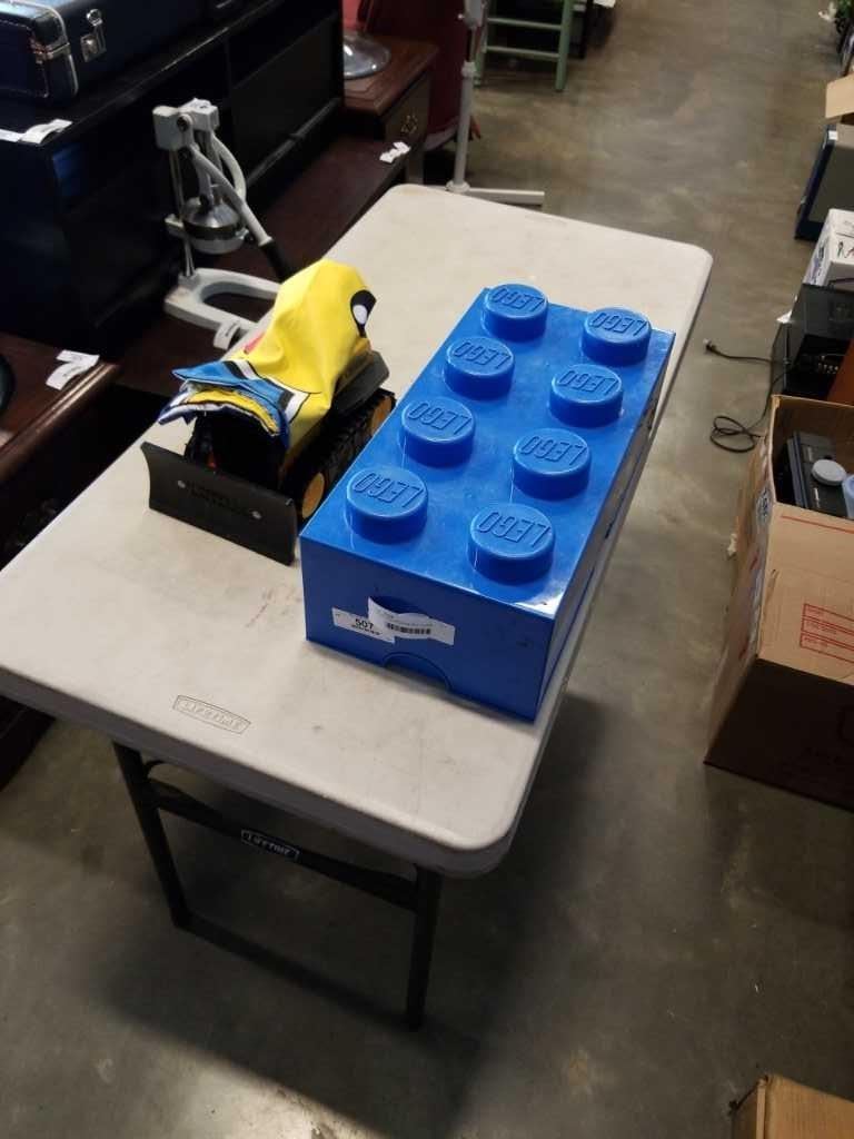 LARGE LEGO STORAGE BOX, TONKA BULLDOZER AND POKEMON BANNER