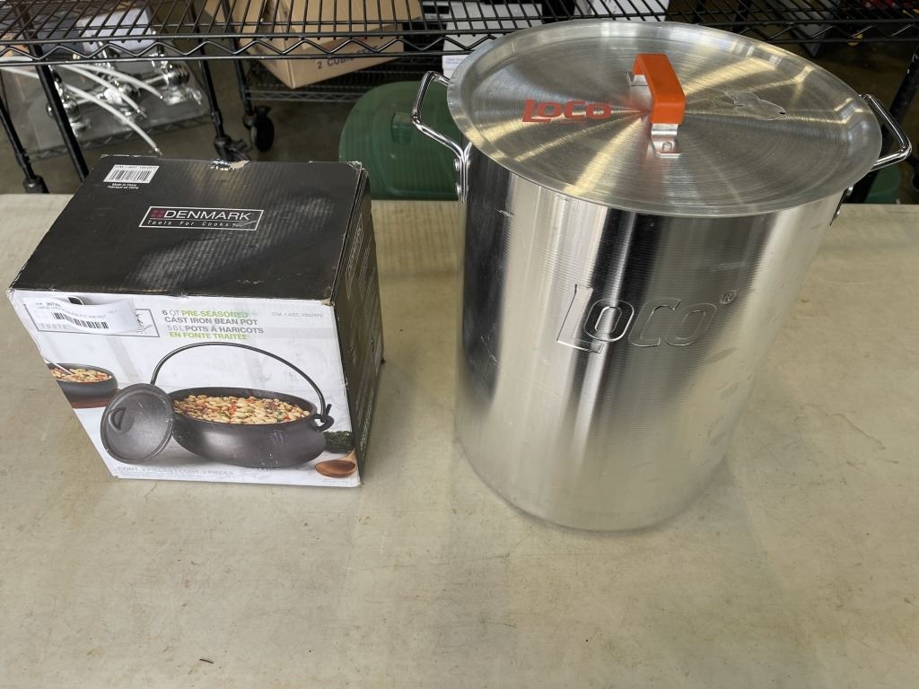 LARGE LOCO STAINLESS POT AND 6QT CAST IRON BEAN POT