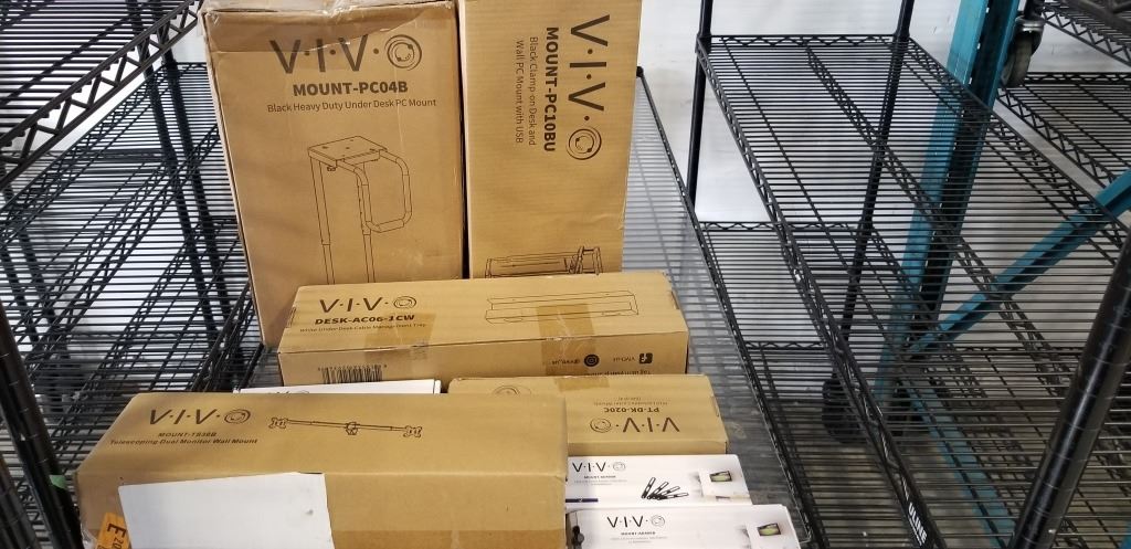 LARGE LOT OF ASSORTEC VIVO MOUNTS, ACCESSORIES, CABLE MANAGEMENT ETC