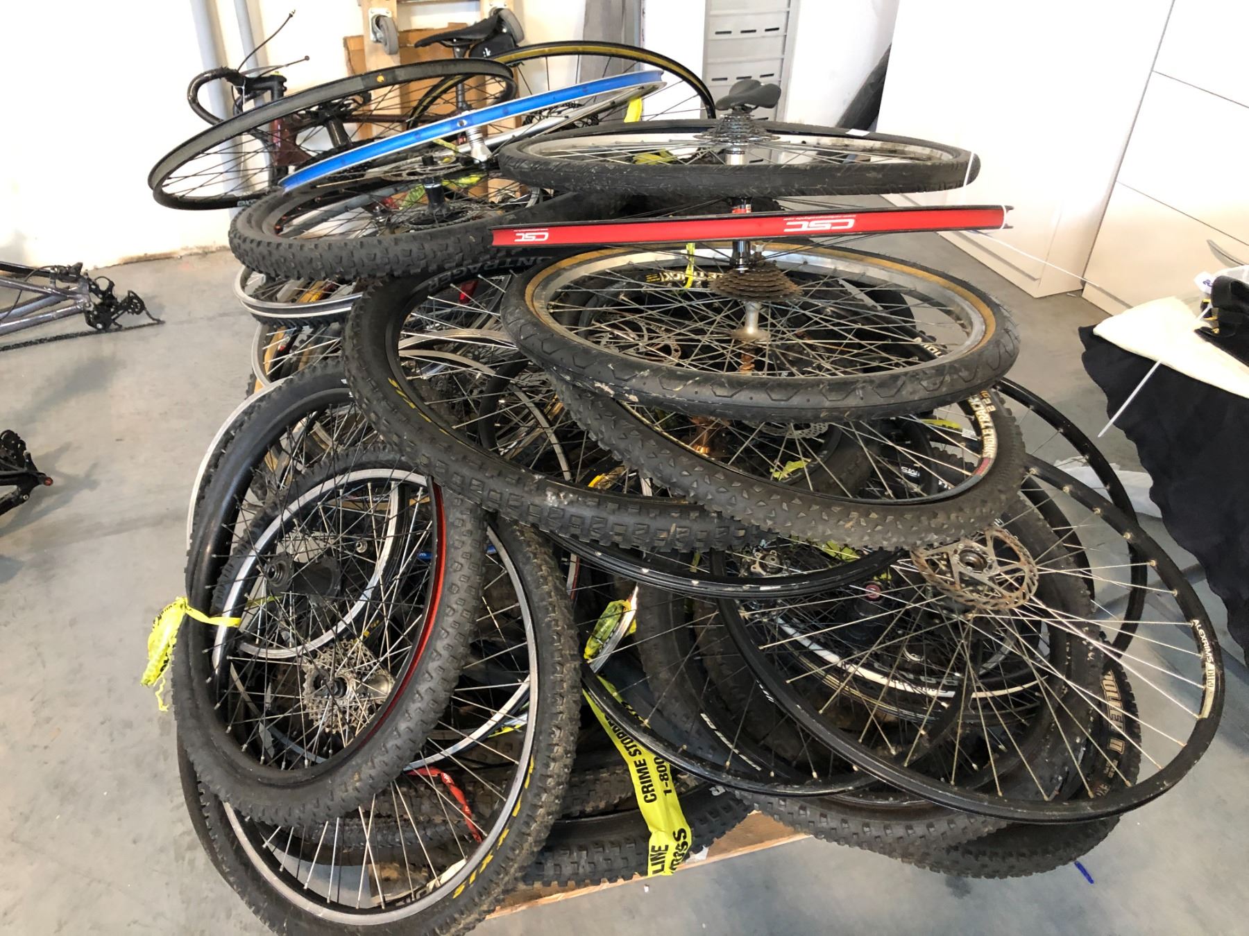 LARGE LOT OF BIKE RIMS AND TIRES MUST TAKE ALL