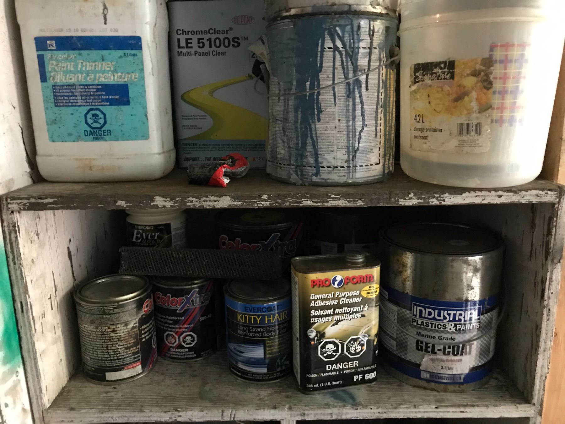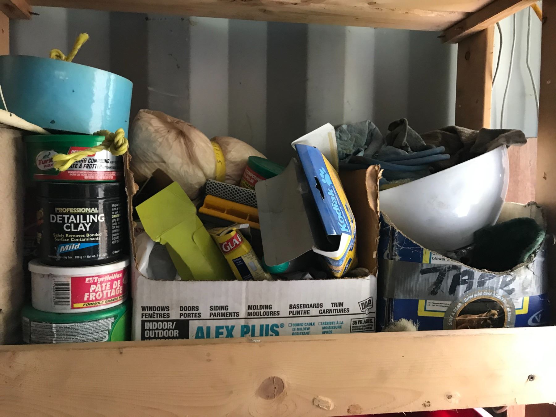 LARGE LOT OF CAR WAX, CLEANING SUPPLIES, SOLVENTS, SAND PAPER & TOUCH UP PAINT *NANAIMO*