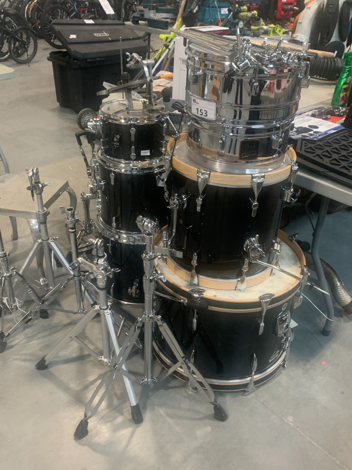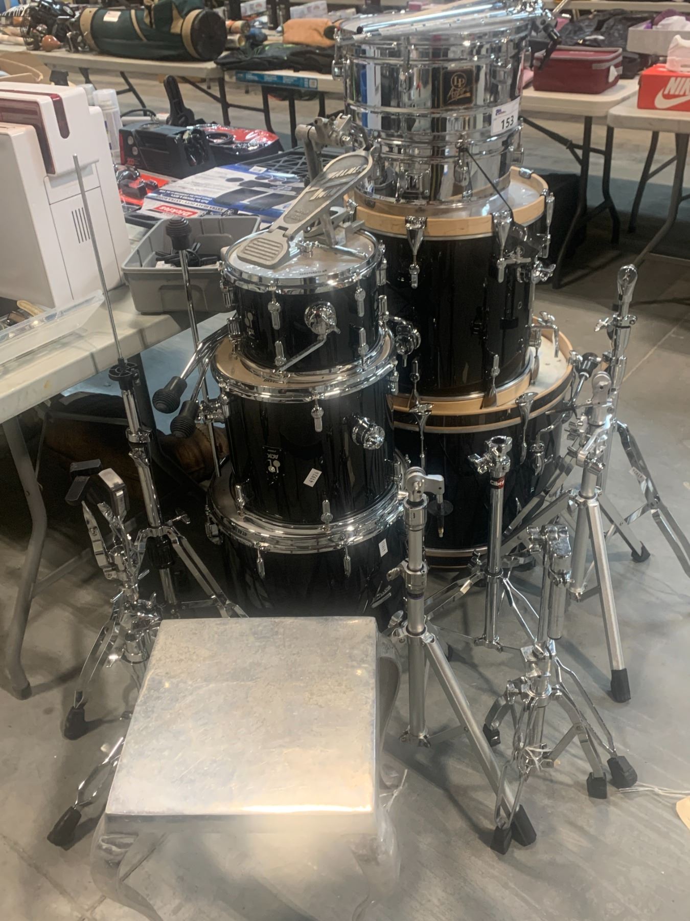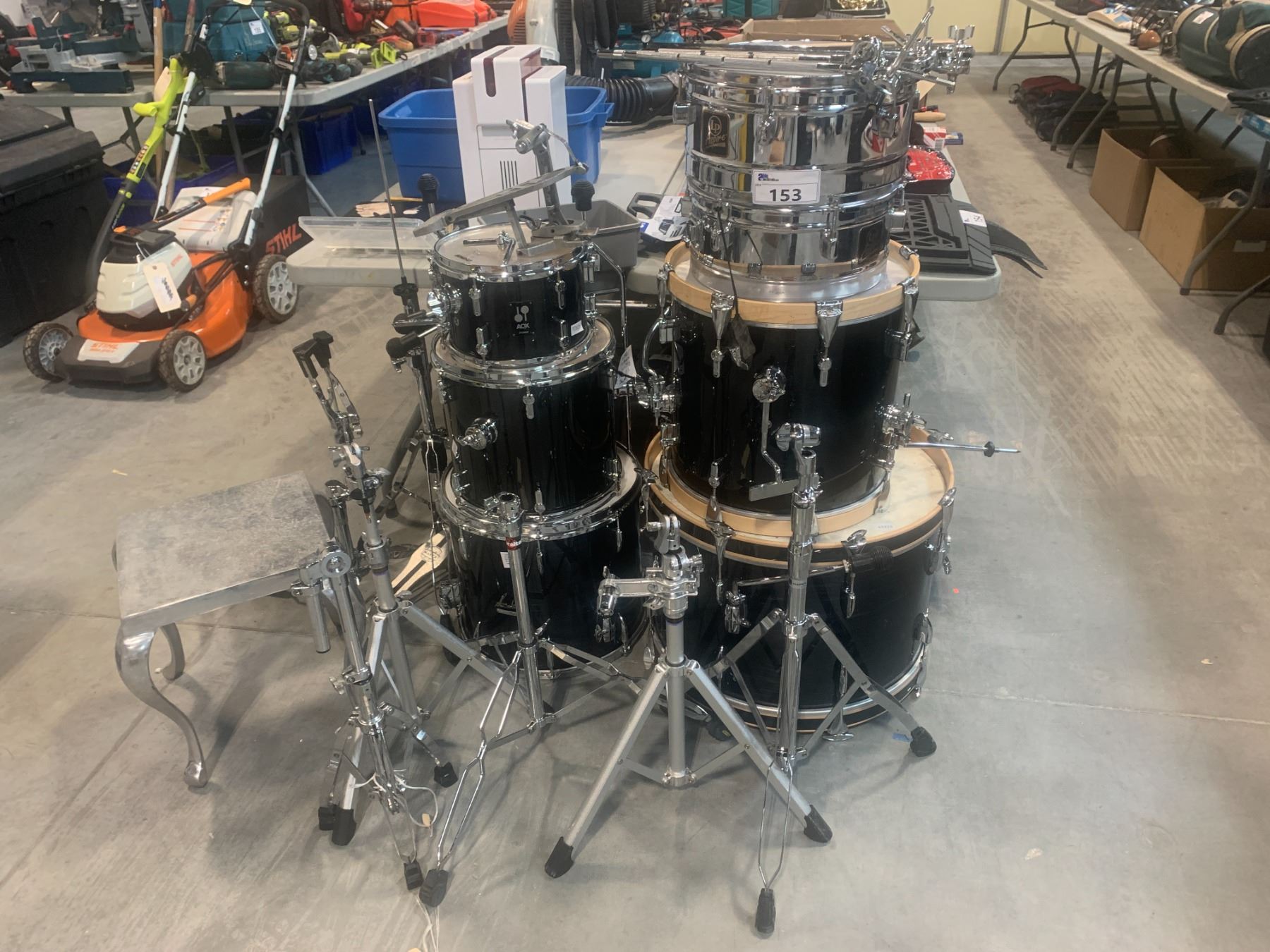 LARGE LOT OF SONOR DRUMS AND BOOM STANDS AND 2 SPEAKERS - MUST TAKE ALL