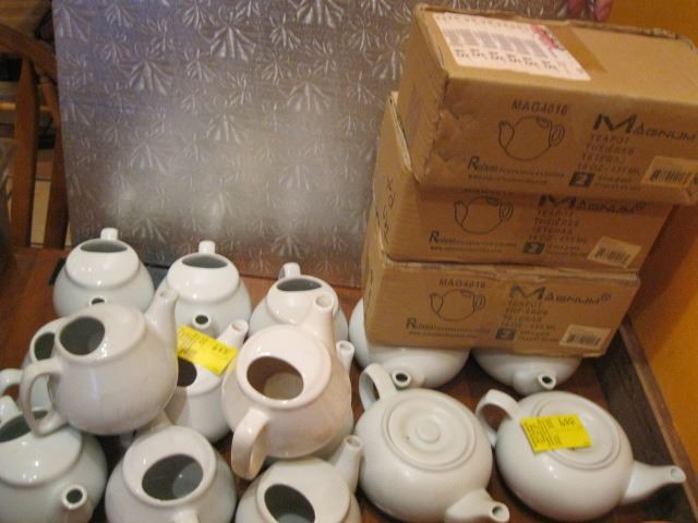LARGE LOT OF WHITE TEAPOTS (6 NEW IN BOX)