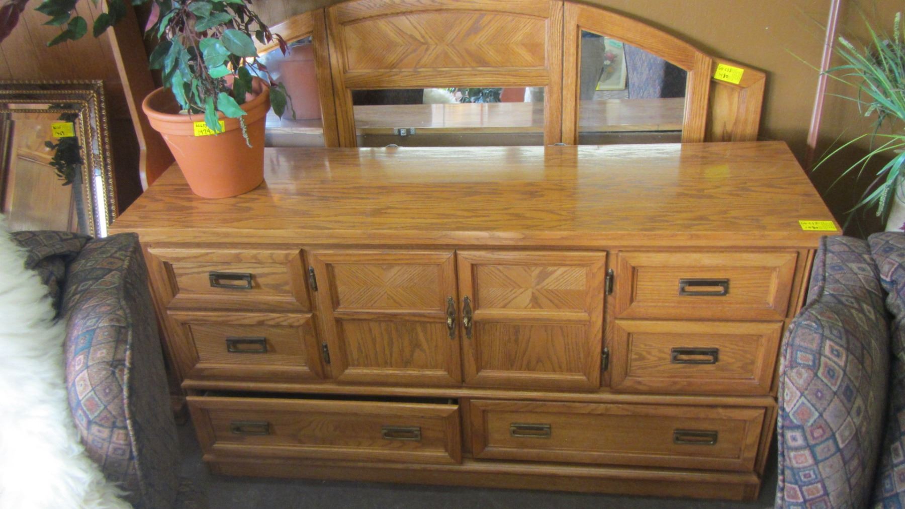 LARGE MIRRORED DRESSER AND MATCHING HEADBOARD