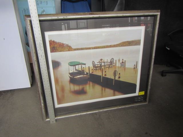 LARGE PICTURE OF DOCK AND BOAT. SOME WATER DAMAGE