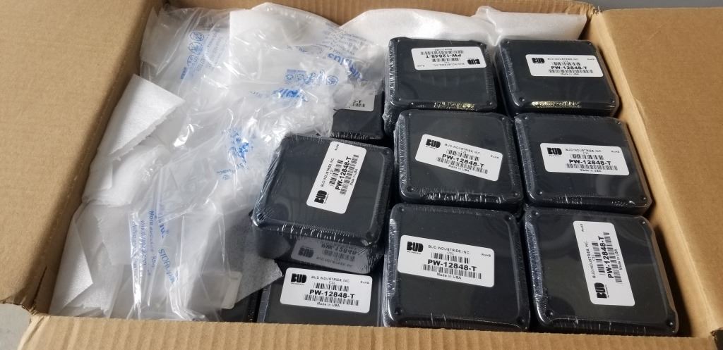 LARGE QTY OF SMALL ELECTRICAL ENCLOSURES, BUD INDUSTRIES PART NUMBER PW-12848-T