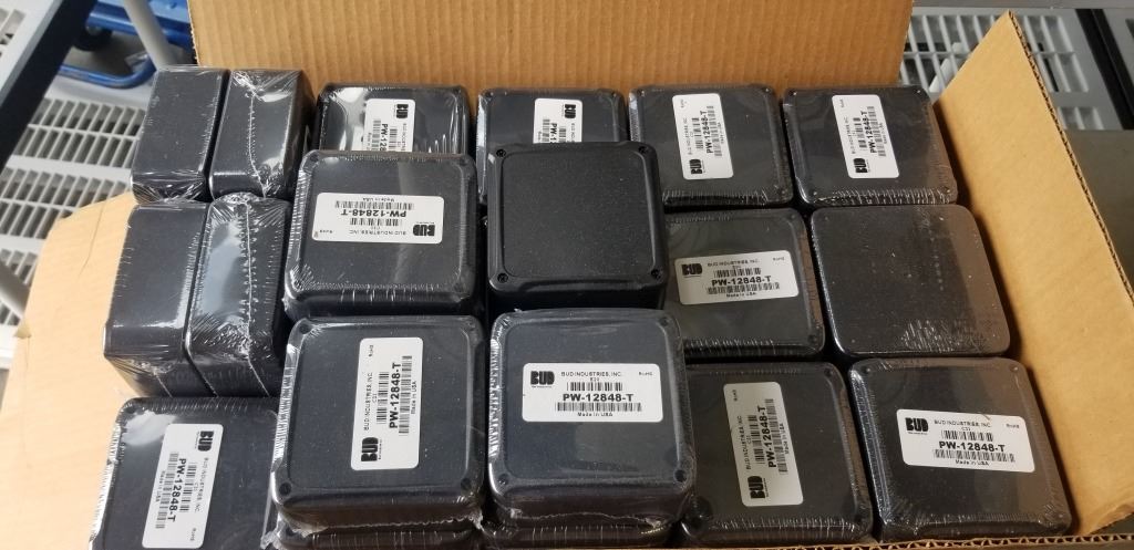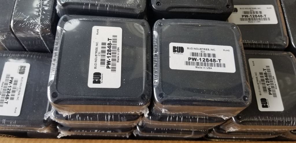 LARGE QTY OF SMALL ELECTRICAL ENCLOSURES, BUD INDUSTRIES PART NUMBER PW-12848-T