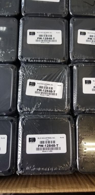 LARGE QTY OF SMALL ELECTRICAL ENCLOSURES, BUD INDUSTRIES PART NUMBER PW-12848-T