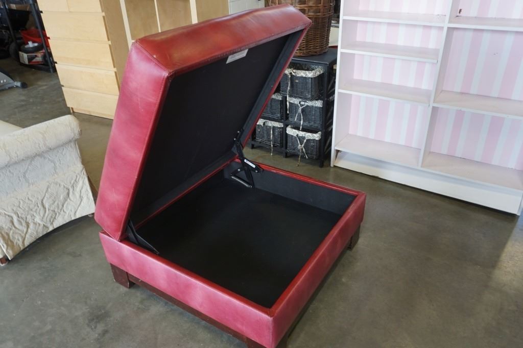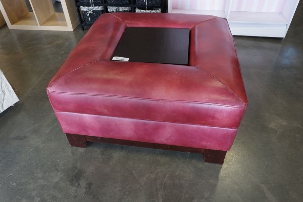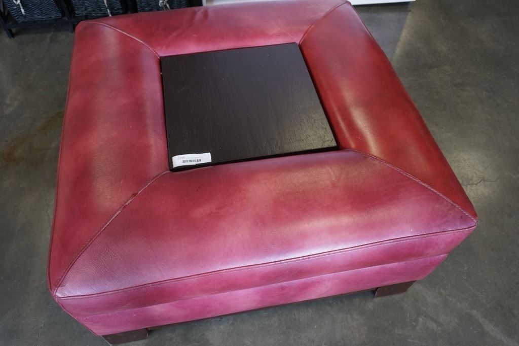 LARGE RED STORAGE OTTOMAN WITH CENTER TRAY - 37 X 37 INCHES