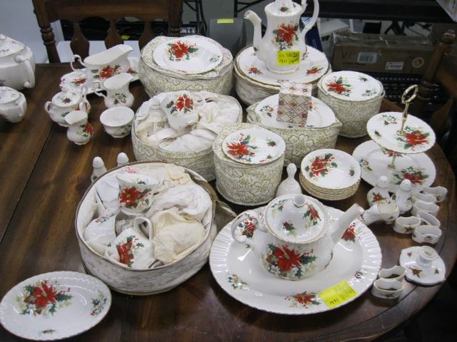LARGE SET OF ROYAL ALBERT 'POINSETTA' ENGLISH BONE CHINA