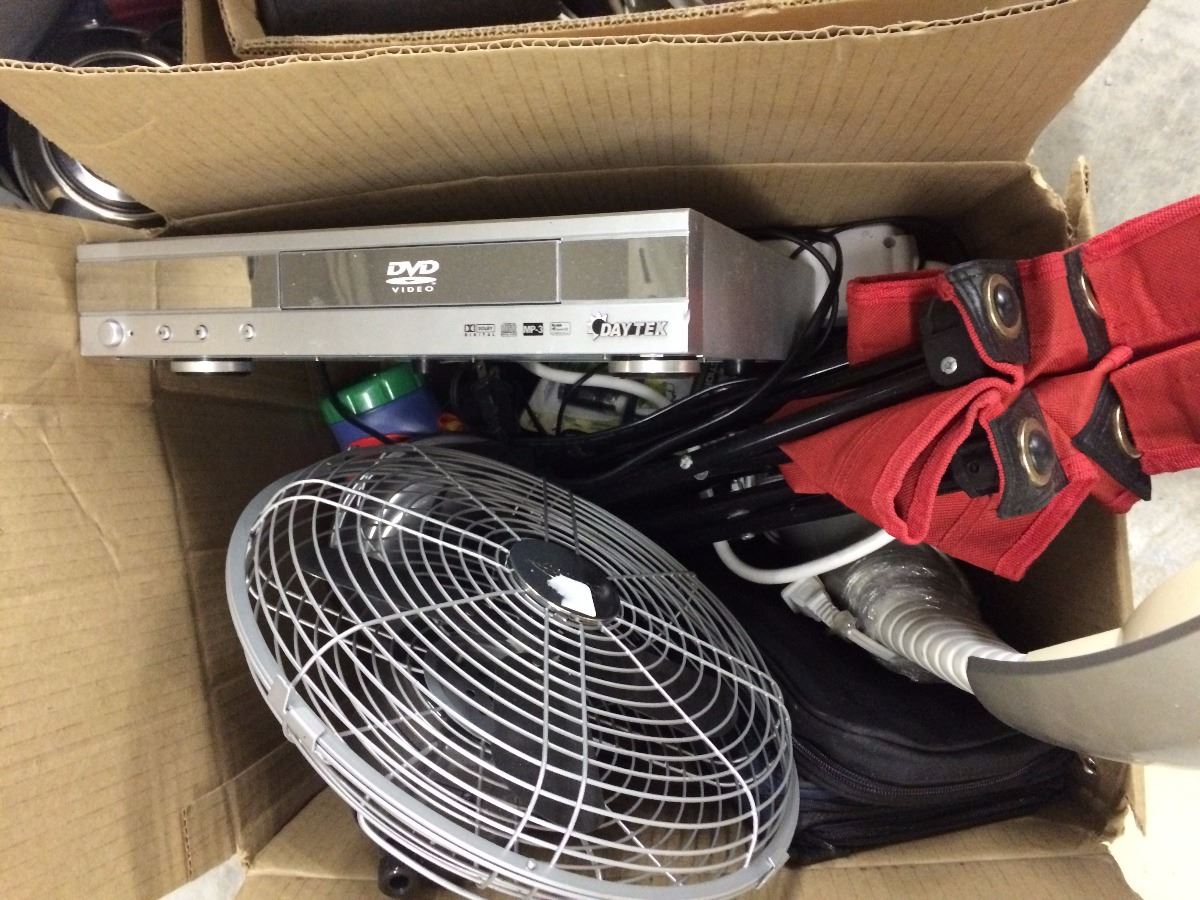 INCLUDES CAMPING CHAIR, FAN, VARIOUS LIGHTS & DVD PLAYER