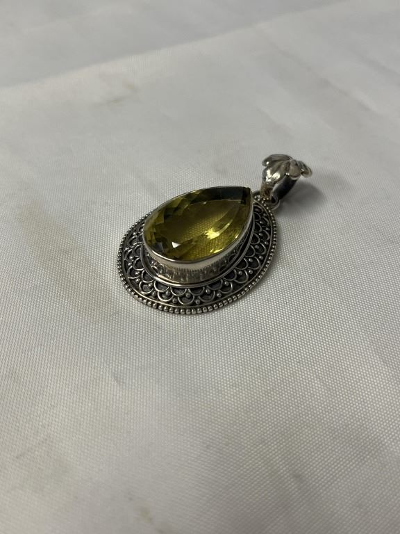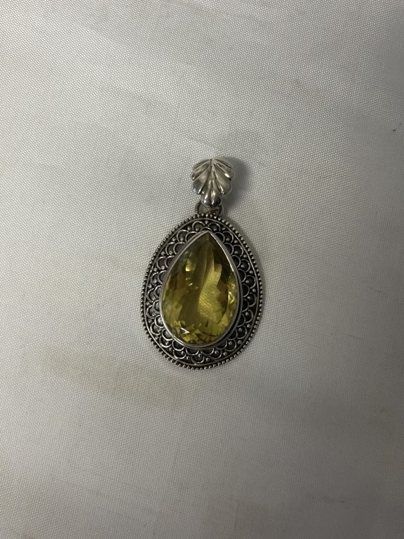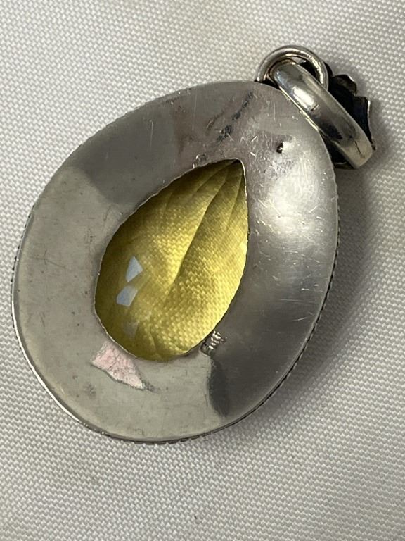 LARGE SOLID STERLING SILVER W/ CITRINE STONE PENDANT, HAND MADE MARKED 925