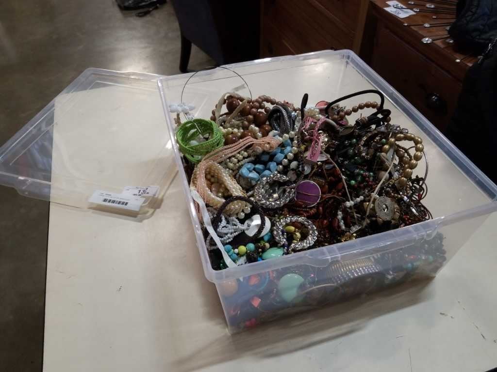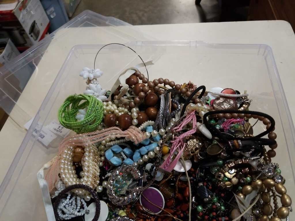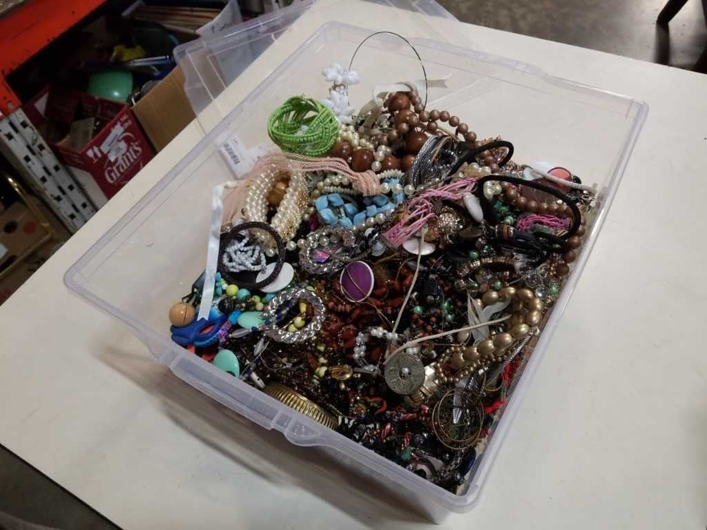 LARGE TOTE W/ LID OF JEWELLERY