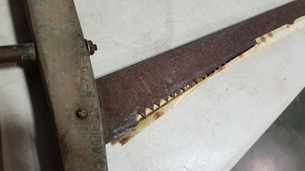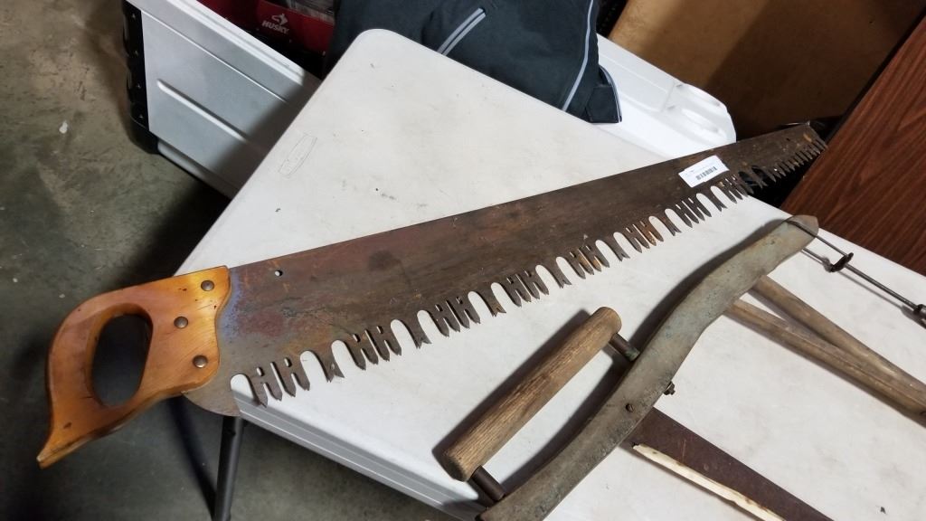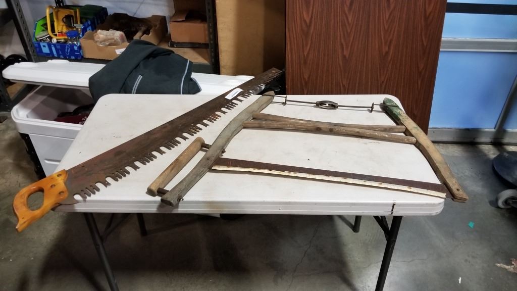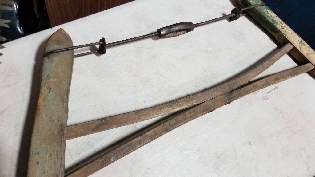 LARGE VINTAGE SAW AND WOOD BOW SAW