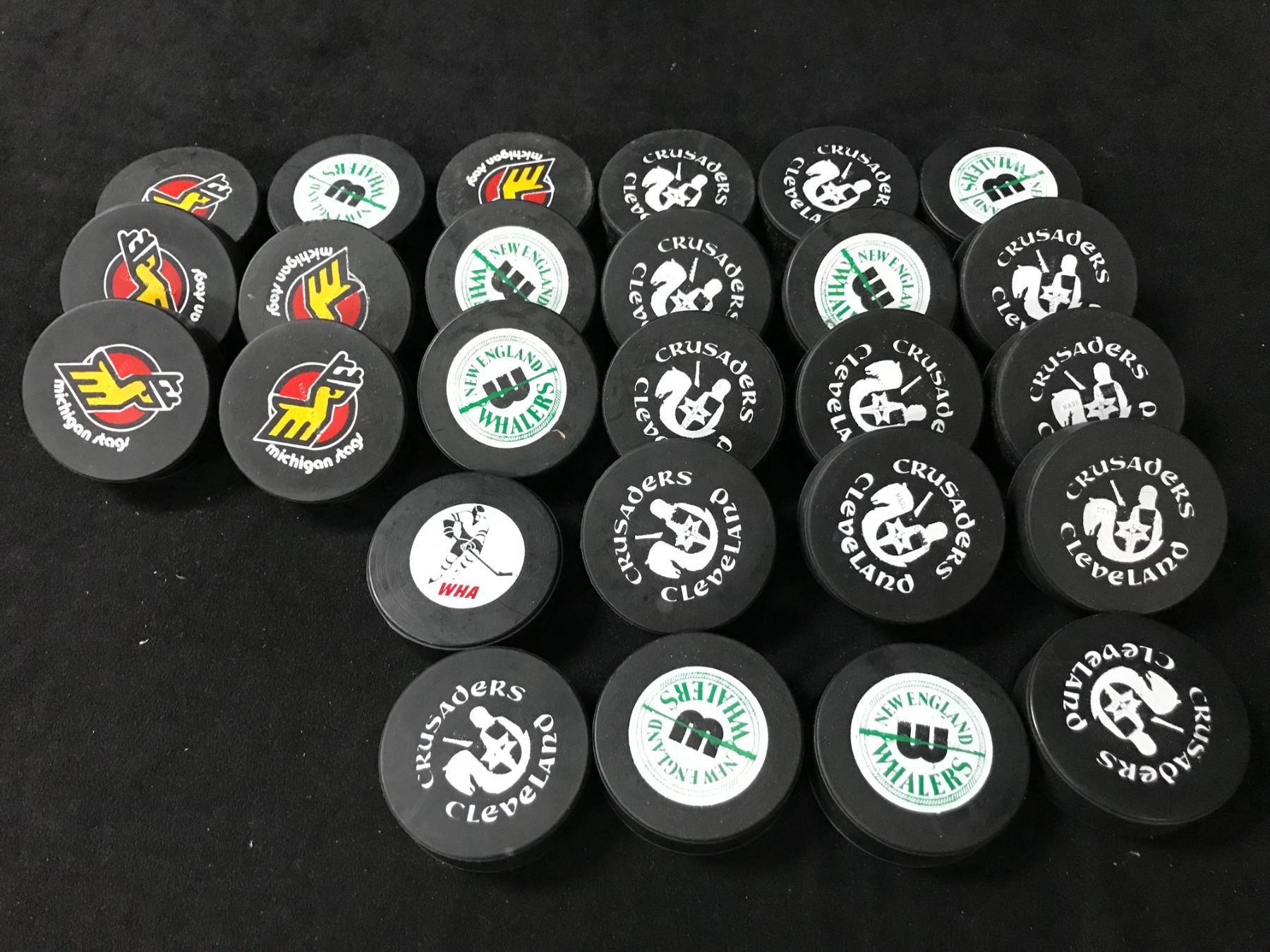 LARGE VINTAGE WHA HOCKEY PUCK LOT