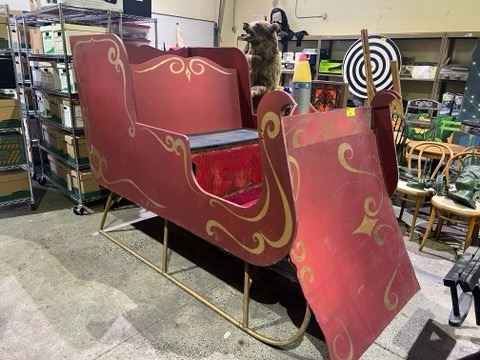 LARGE WOOD & METAL SANTA'S SLEIGH APPROX 60"X96"X49"