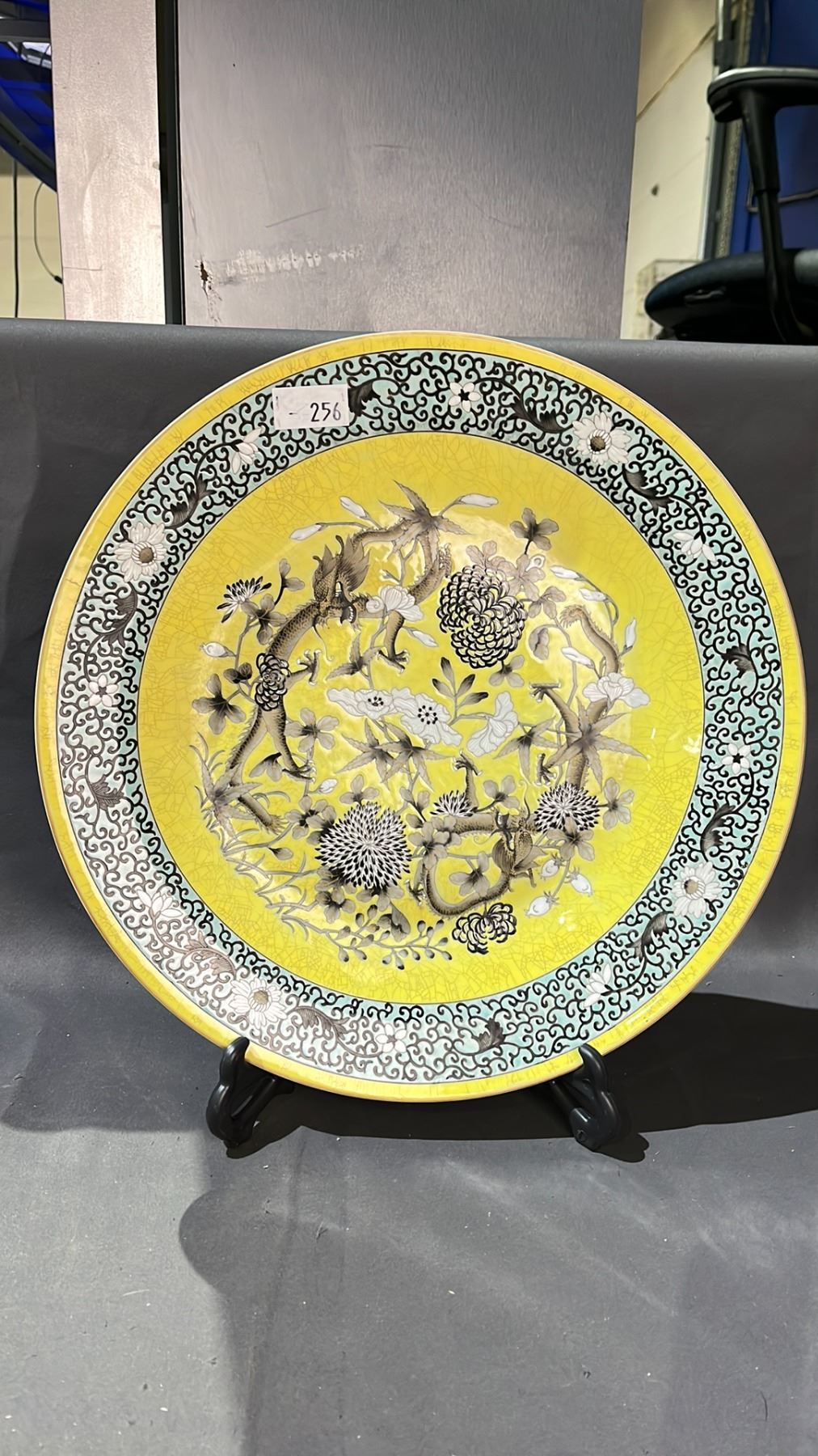 LARGE YELLOW GROUND FAMILLE ROSE ROYAL STUDIO CHARGER