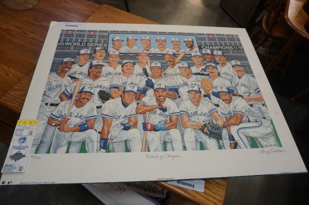 LARRY EISENSTEIN LIMITED EDITION PRINT PORTRAIT OF CHAMPIONS BLUEJAYS 1992 WORLD SERIES PRINT WITH TICKET ATTACHED