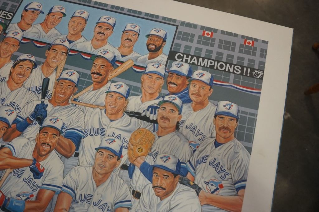 LARRY EISENSTEIN LIMITED EDITION PRINT PORTRAIT OF CHAMPIONS BLUEJAYS 1992 WORLD SERIES PRINT WITH T