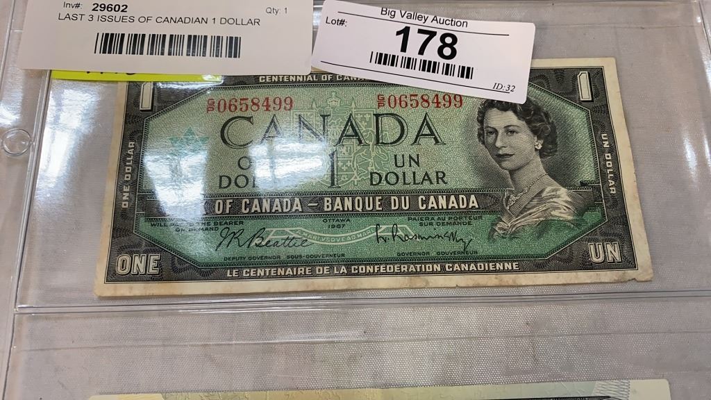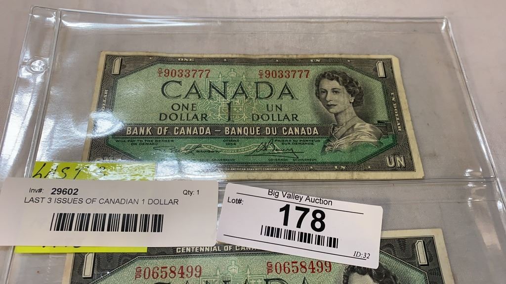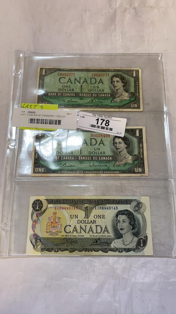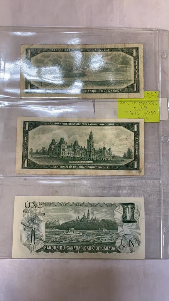 LAST 3 ISSUES OF CANADIAN 1 DOLLAR BILLS - 1954, 1967, 1973