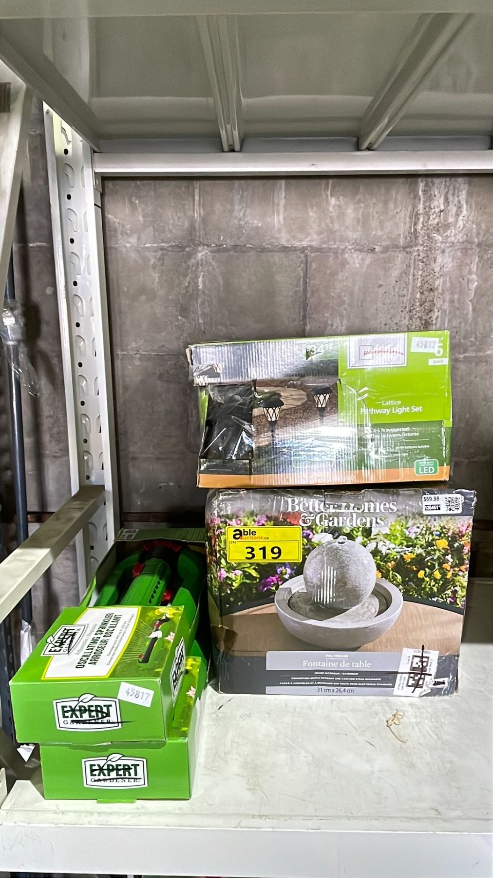 LATTICE PATHWAY LIGHT SET, BETTER HOMES & GARDENS TABLE FOUNTAIN & 2 EXPERT GARDENER SPRINKLERS (UNKNOWN WORKING CONDITION, MAY BE MISSING PARTS & PIECES)