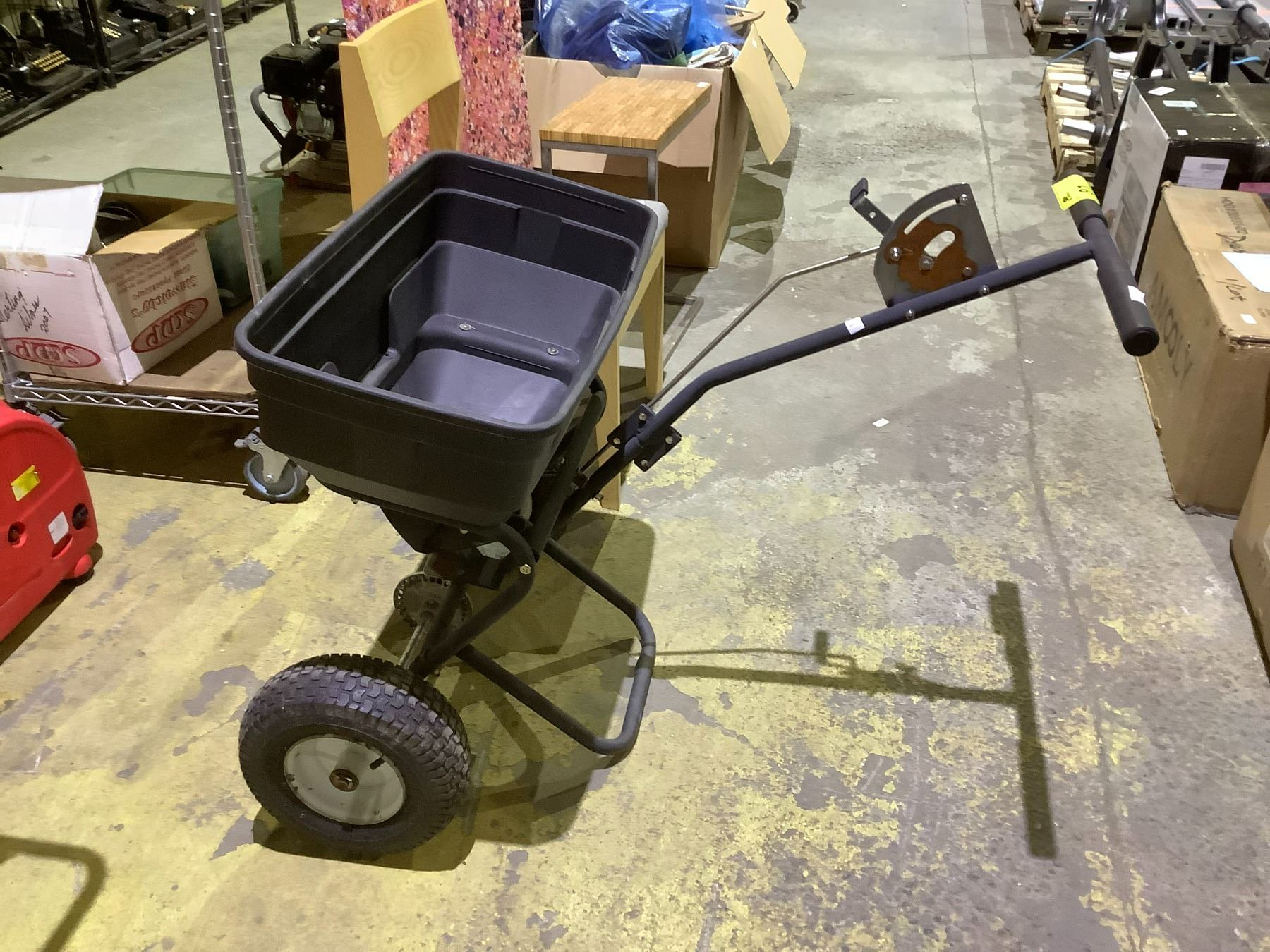 LAWN SPREADER WITH PNEUMATIC TIRES