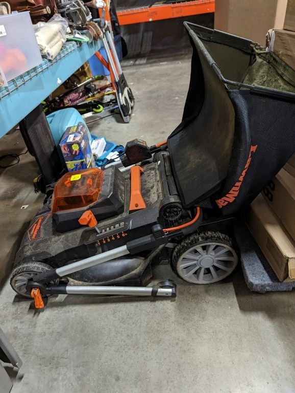LAWNMASTER CORDLESS LAWN MOWER WITH BATTERY NO CHARGER DEFECTIVE STORE RETURN
