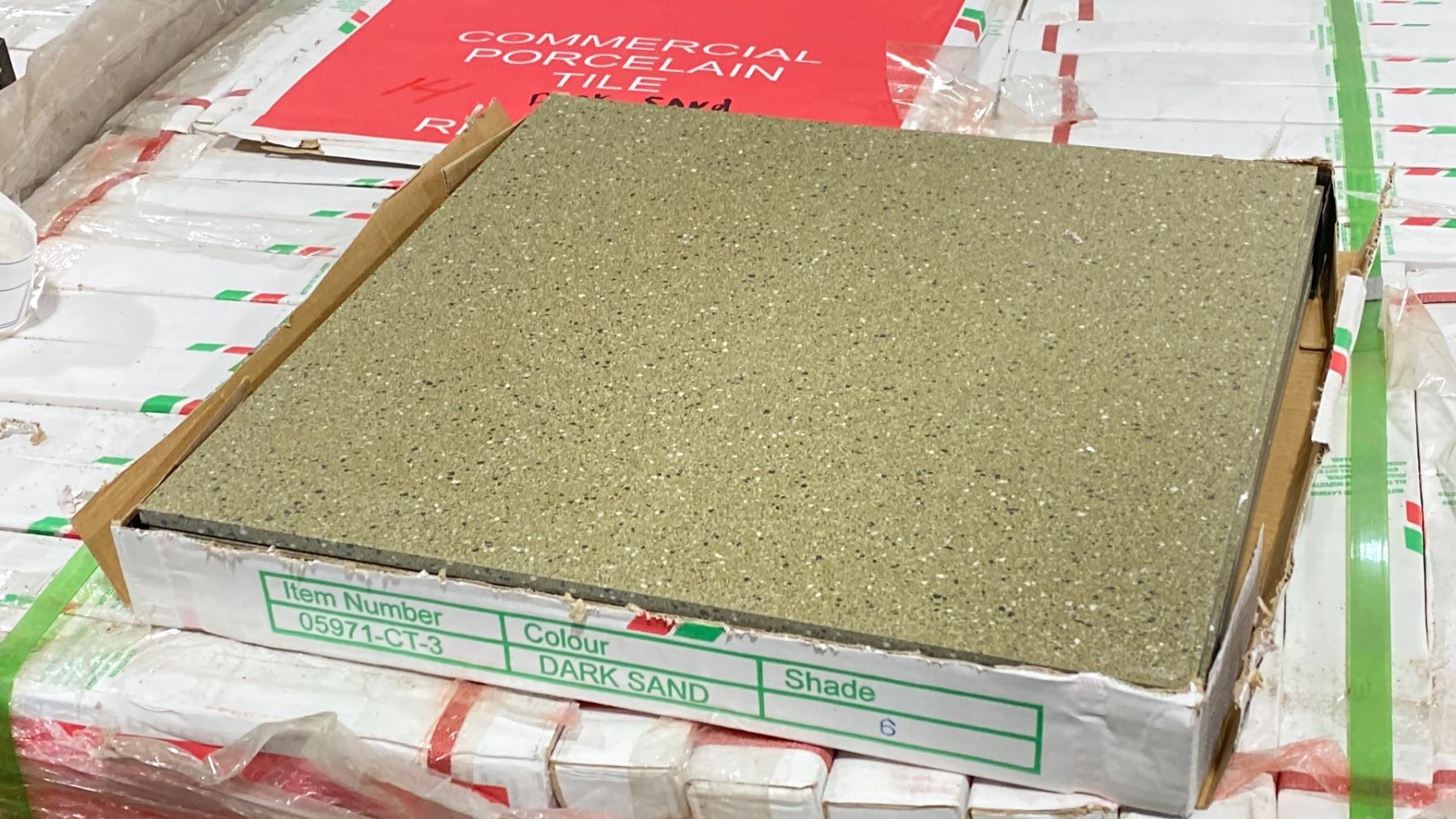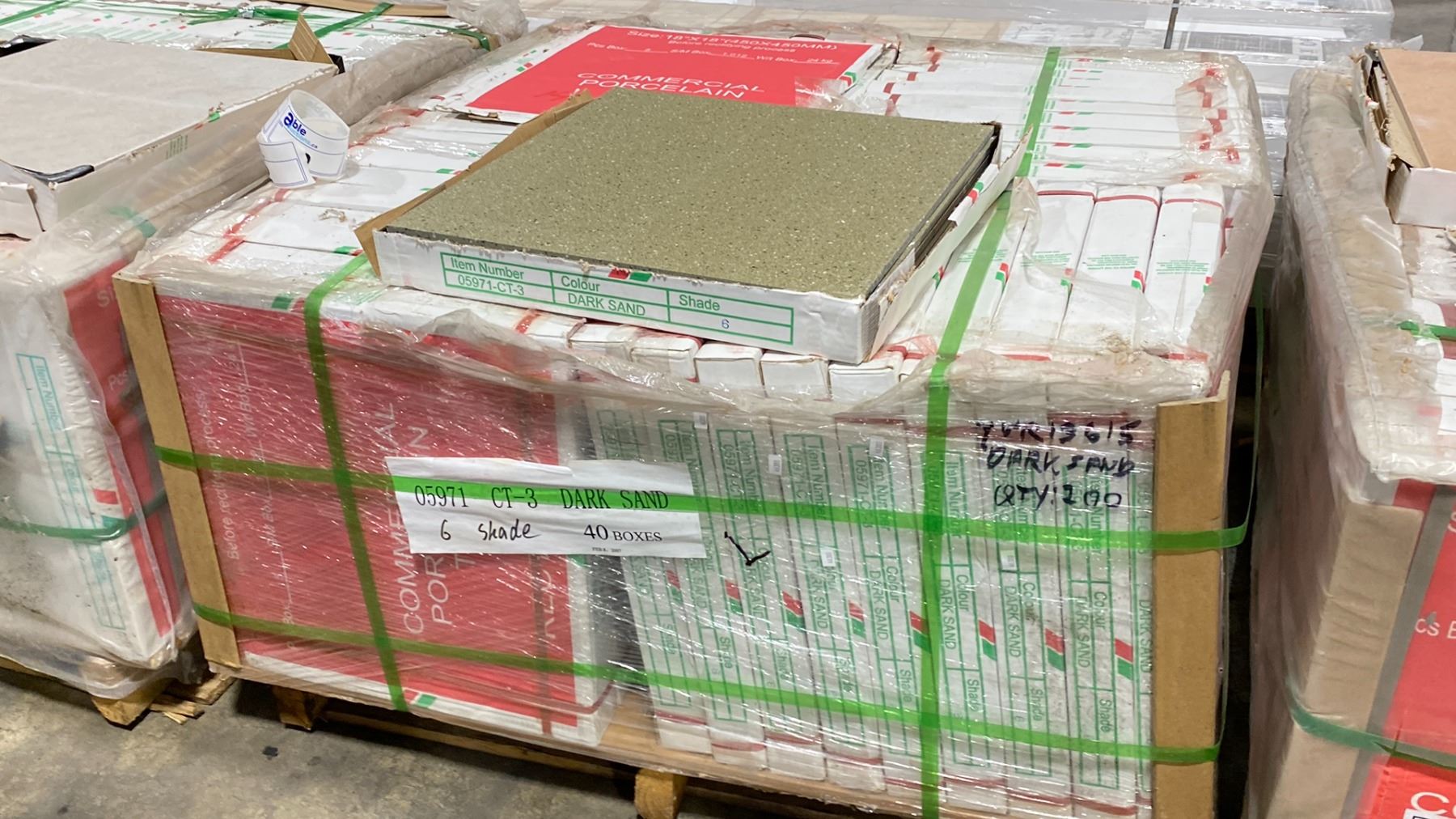 *LD* 432SQ FT OF DARK SAND 18"X18" COMMERCIAL PORCELAIN FLOOR TILE 10.8SQ FT, 5 PCS PER BOX, 1.012 SQ METERS PER BOX 40 BOXES, 432 SQ FT TOTAL *MUST TAKE ALL ON PALLET* LOCATED IN SURREY, MONDAY/TUESDAY PICKUP