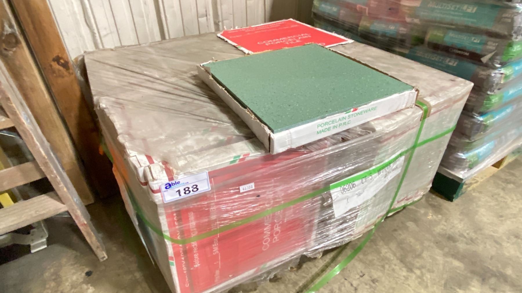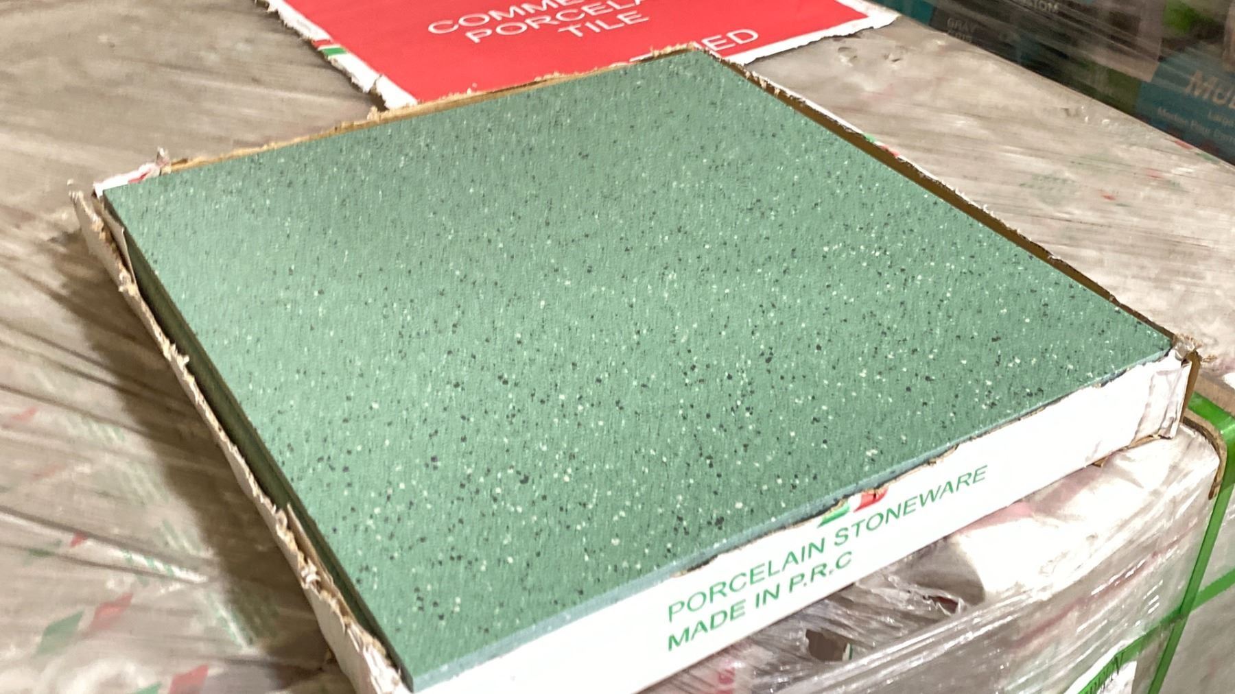 *LD* 432SQ FT OF MEDIUM GREEN 17.5"X17.5" COMMERCIAL PORCELAIN FLOOR TILE 10.8SQ FT, 5 PCS PER BOX, 1.012 SQ METERS PER BOX 40 BOXES, *MUST TAKE ALL ON PALLET* LOCATED IN SURREY, MONDAY/TUESDAY PICKUP