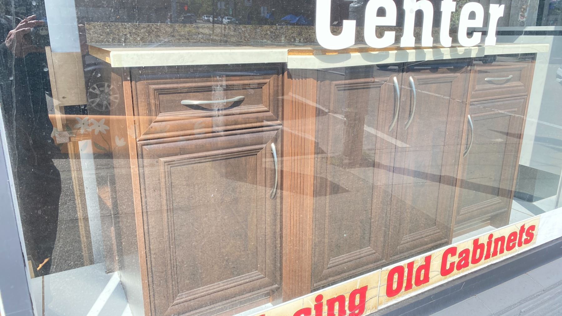 *LD* DARK WOOD MARBLE LOOK LAMINATE TOP 4 DOOR 2 DRAWER CABINET - APPROX. 62"W X 23"D X 32"H **LAST DAY REMOVAL/ APRIL 29TH ONLY**
