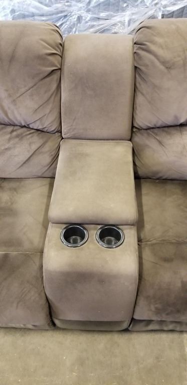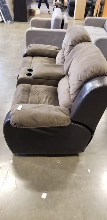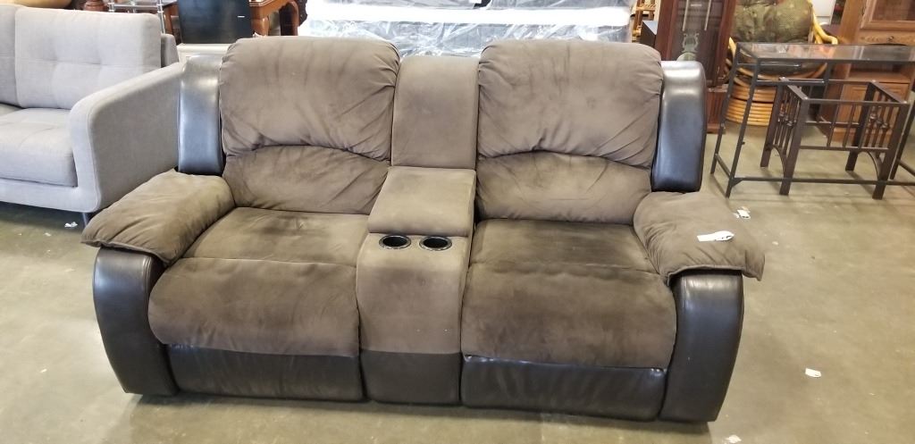 LEATHER AND MICORFIBER DOUBLE RECLINER W/ CUP HOLDERS AND CONSOLE
