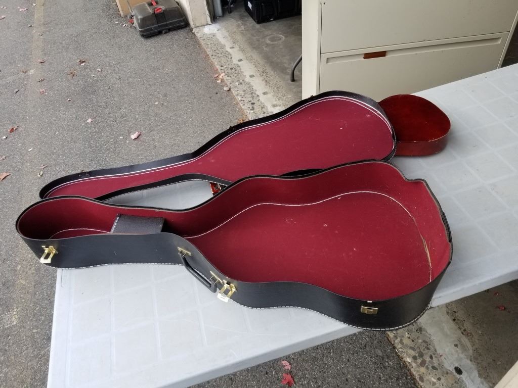 LEATHER GUITAR CASE AND FIRST ACT YOUTH ACOUSTIC GUITAR