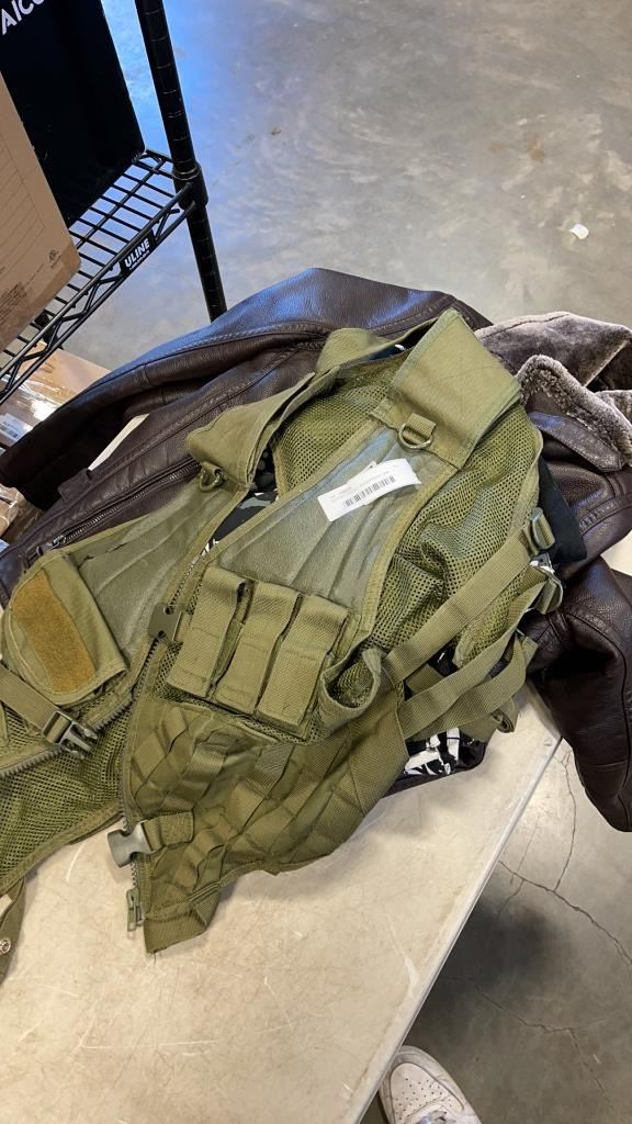 LEATHER JACKET, SNOWPANTS, AND TACTICAL VEST