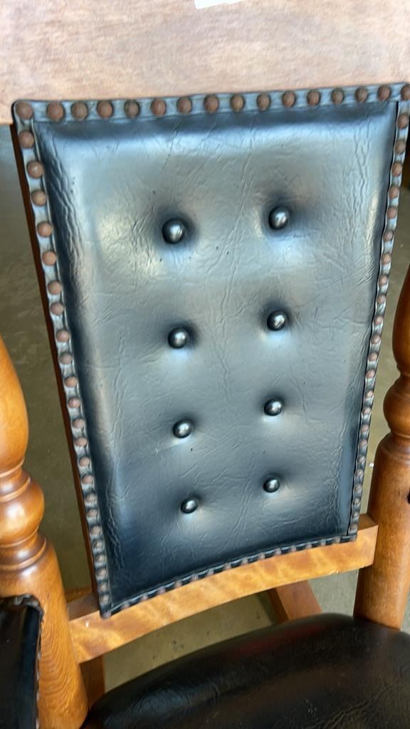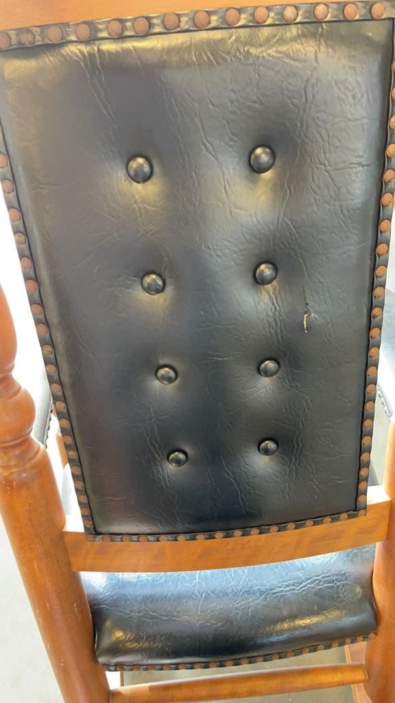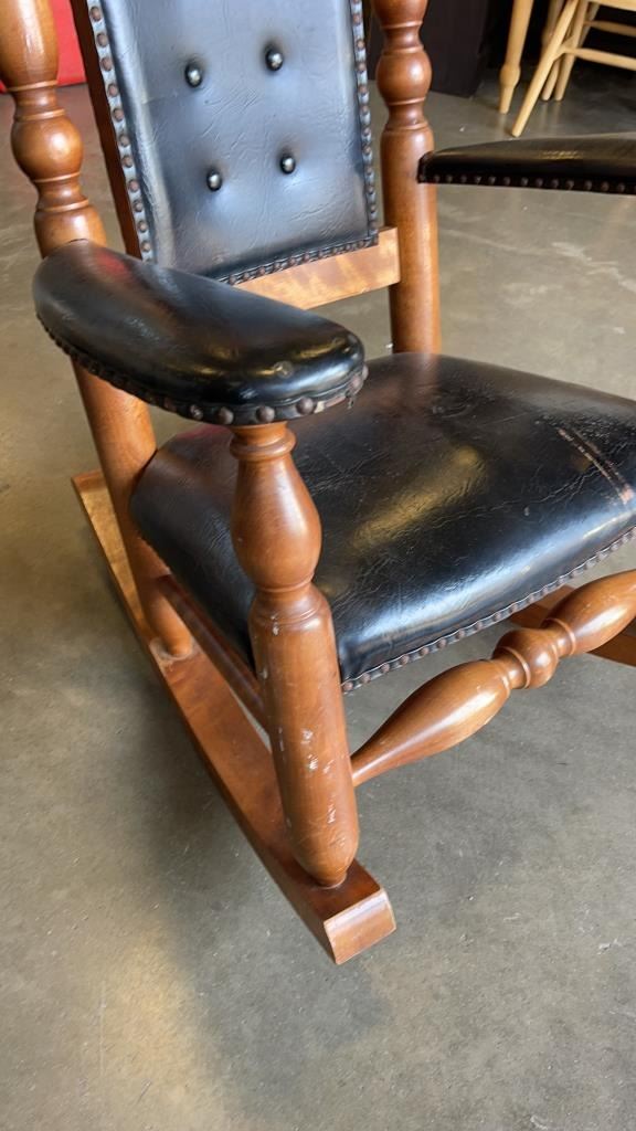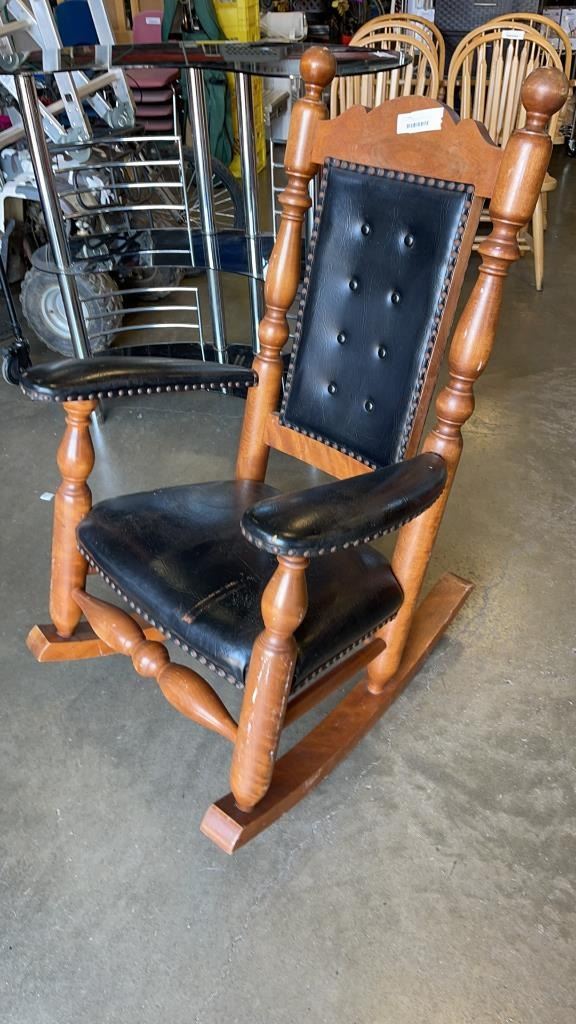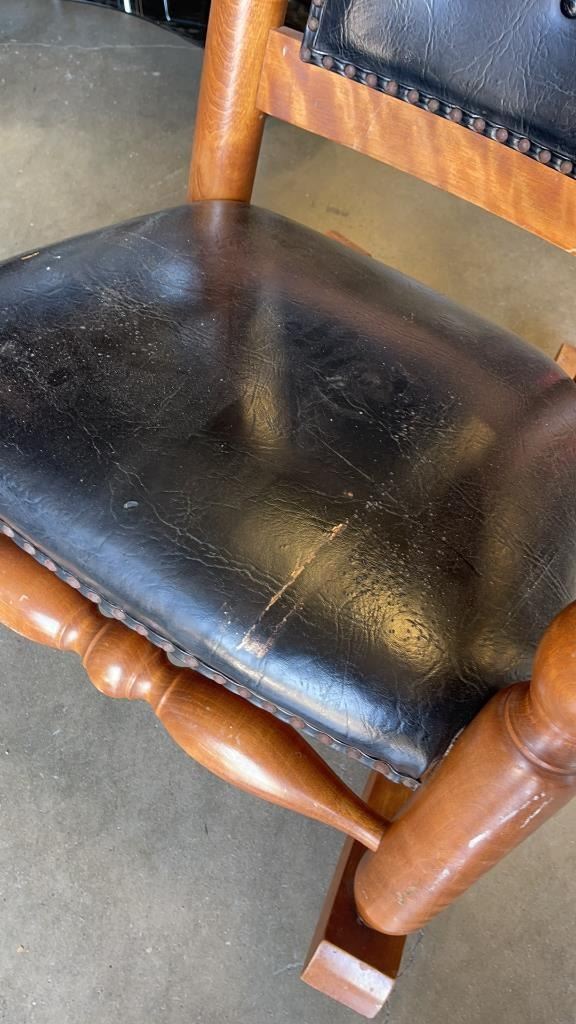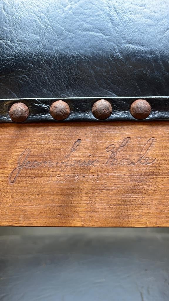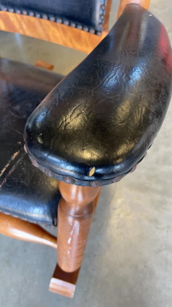 LEATHER ROCKING ARMCHAIR WITH JEAN LOUIS HOULE INSCRIBED