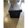 LEATHER STORAGE OTTOMAN WITH ASSORTED HOUSEHOLD AND KITCHEN ITEMS