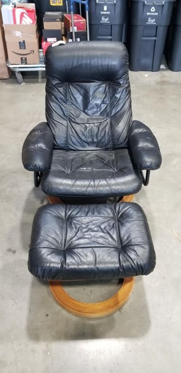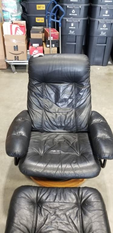 LEATHER SWIVEL CHAIR W/ FOOT STOOL