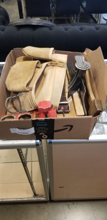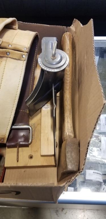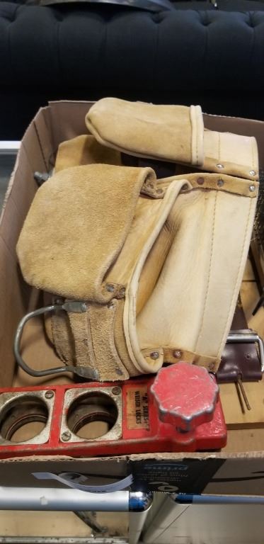 LEATHER TOOL BELT, WIRE BRUSH, STANLEY MITRE BOX AND MORE