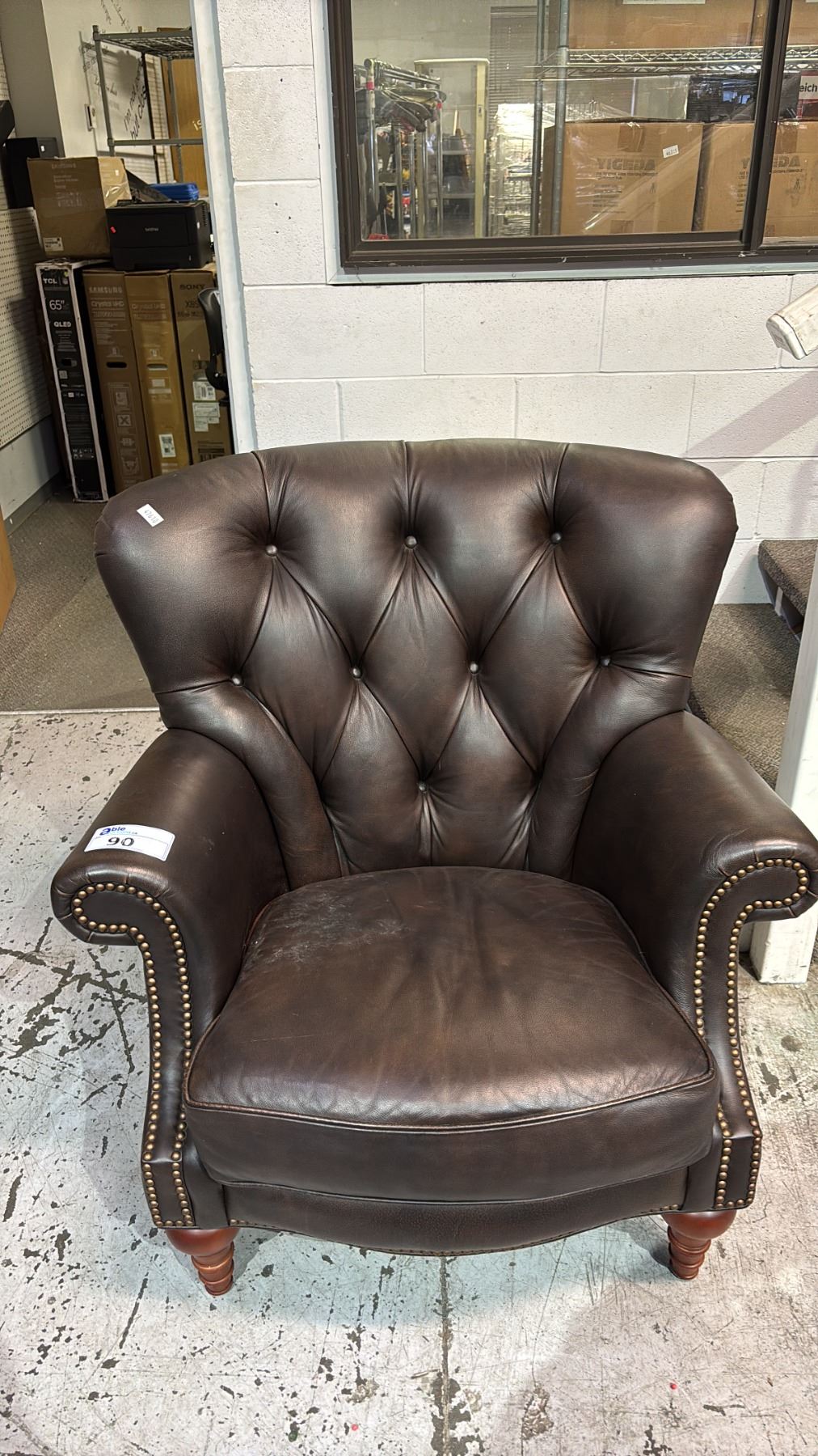 LEATHER TUFTED LOUNGE CHAIR
