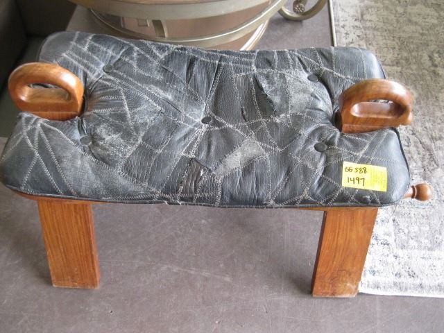 LEATHER & WOOD OTTOMAN