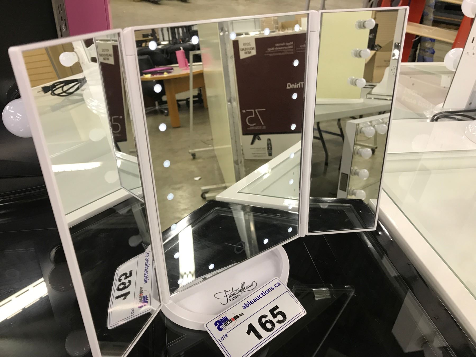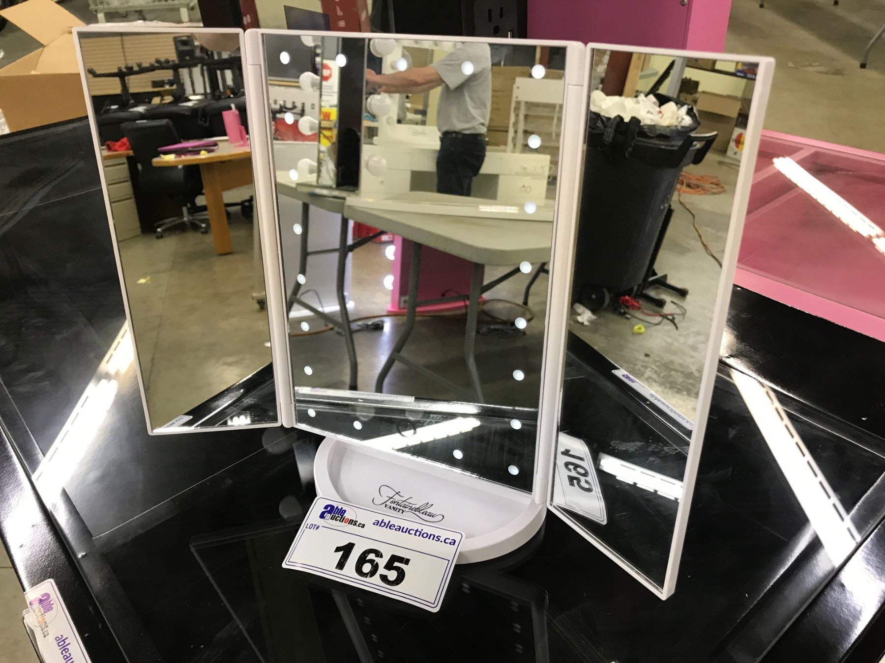 LED LIGHTED TRI-FOLD VANITY MIRROR, ULTRA BRIGHT 21 LEDS, 180 DEGREE ADJUSTABLE, TOUCH CONTROLS,
