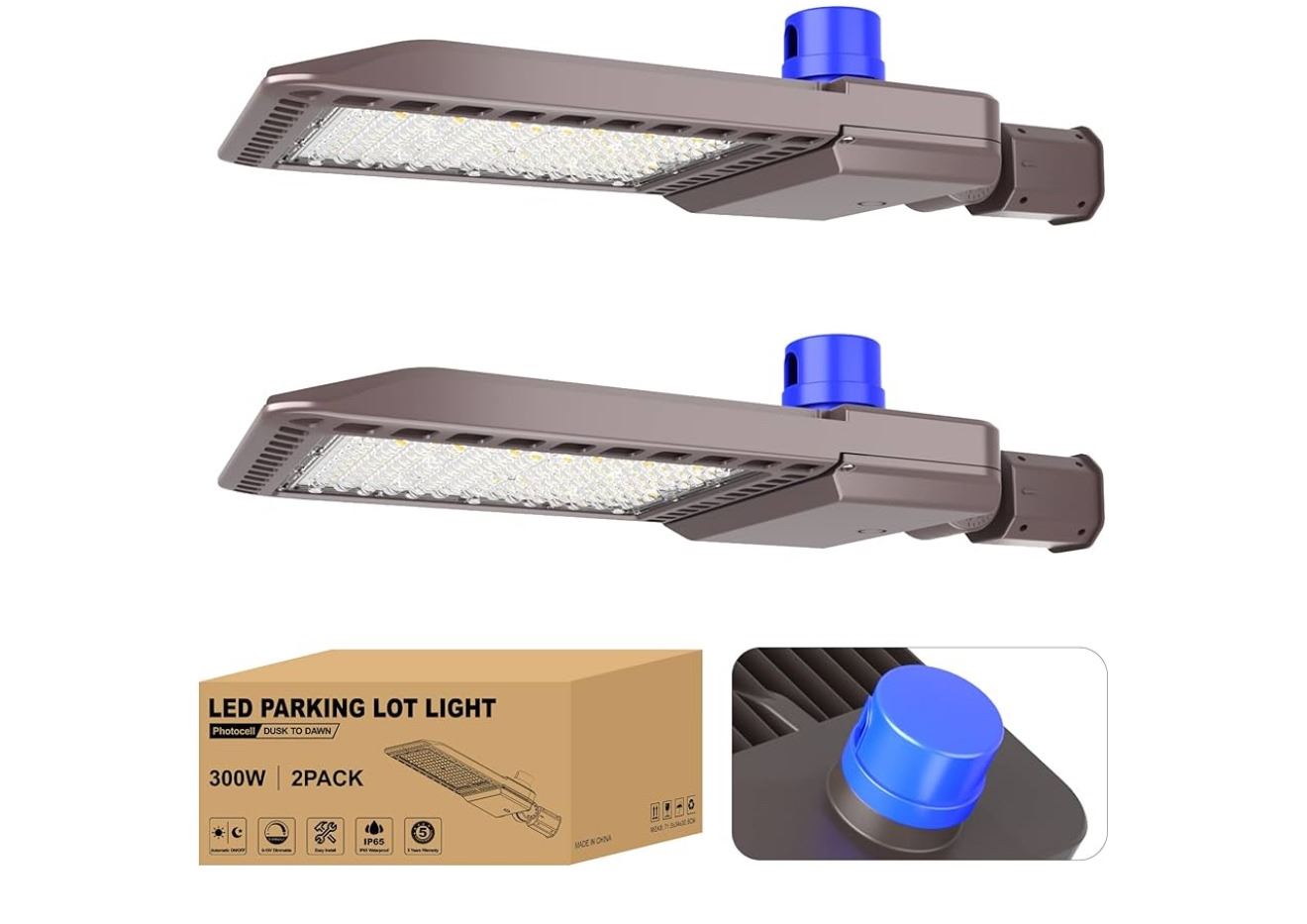 LED Parking Lot Light 2 Pack - 300W - Photocell Dusk to Dawn
