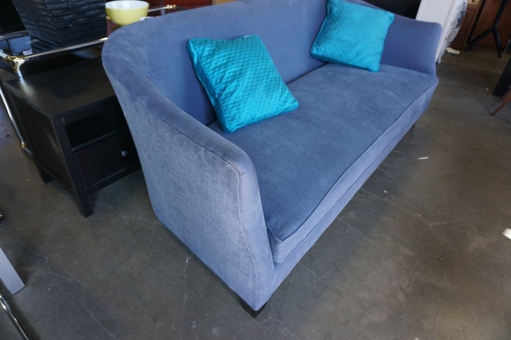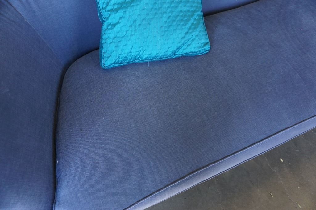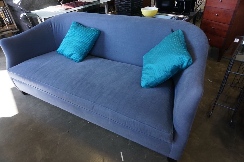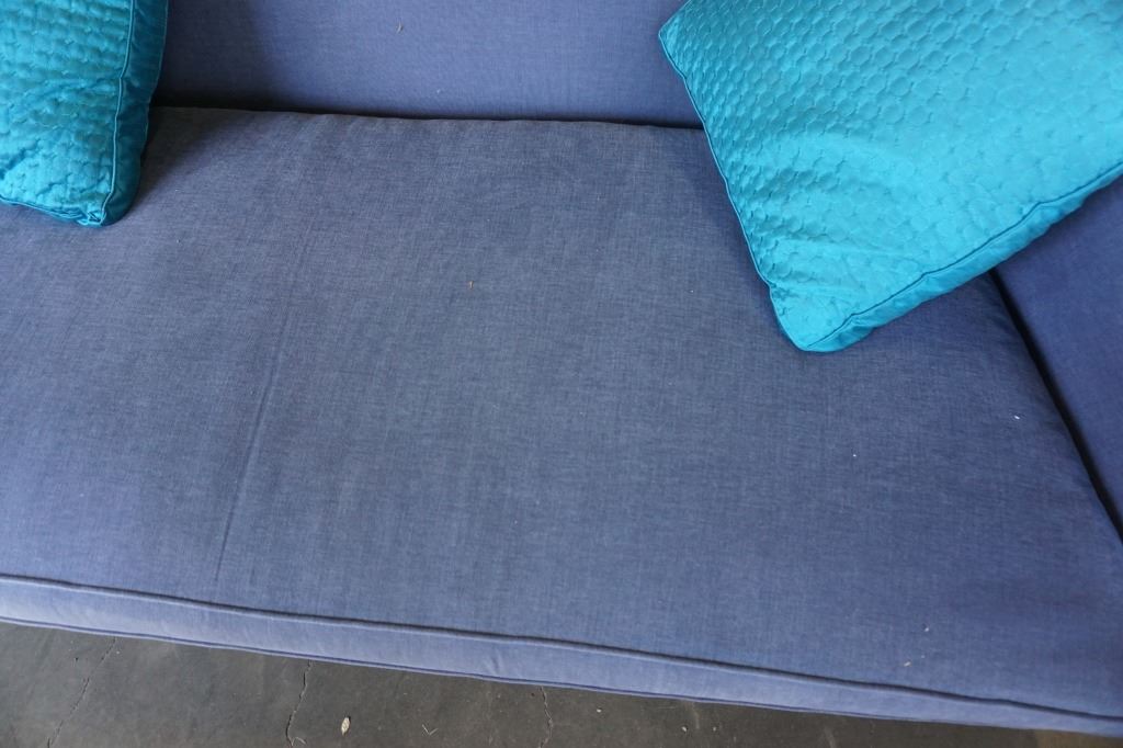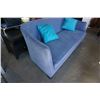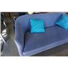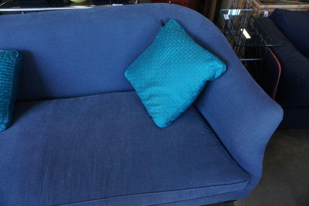 LEE INDUSTRIES CUSTOM HAND MADE BLUE SOFA WITH THROW PILLOWS